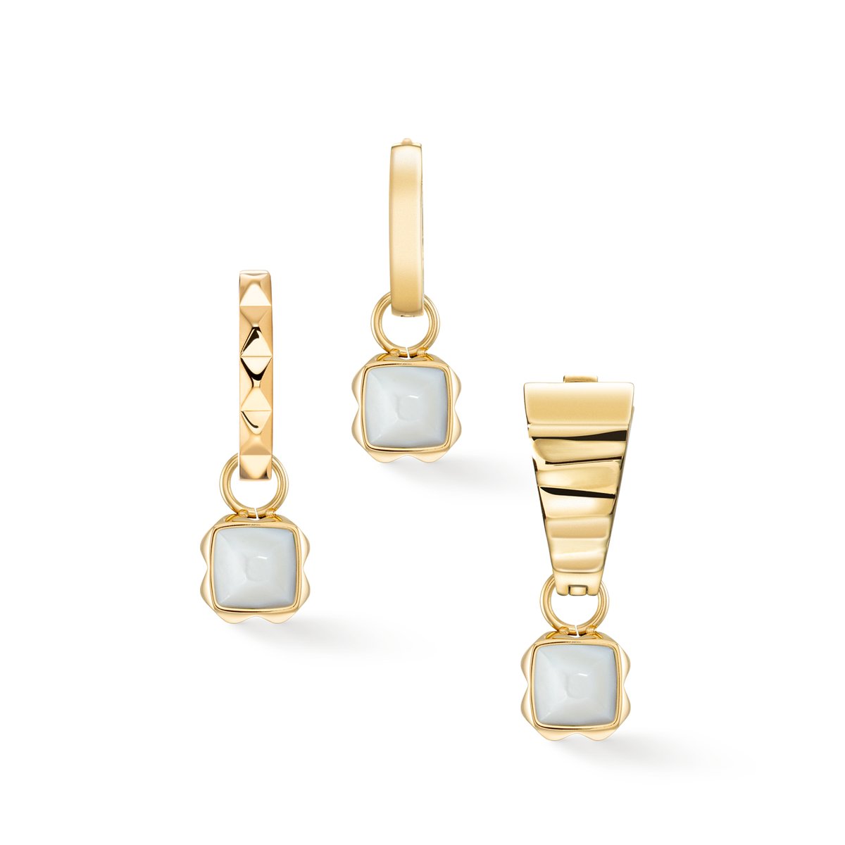 Discover the fascinating COEUR DE LION Birthstone jewellery as an expression of your personality. Each birth month is associated with a specific natural stone* and a unique colour that carry a special meaning. For those born in April, this birthstone charm features a stunning white quartz, which symbolises strength and positive energy. Available to match: necklace, ear studs, bracelet and hoop earrings for the charms. The Birthstone collection, in the trendy spike design, is available in silver and gold. * Each stone is unique from nature. Colour variations are therefore possible.