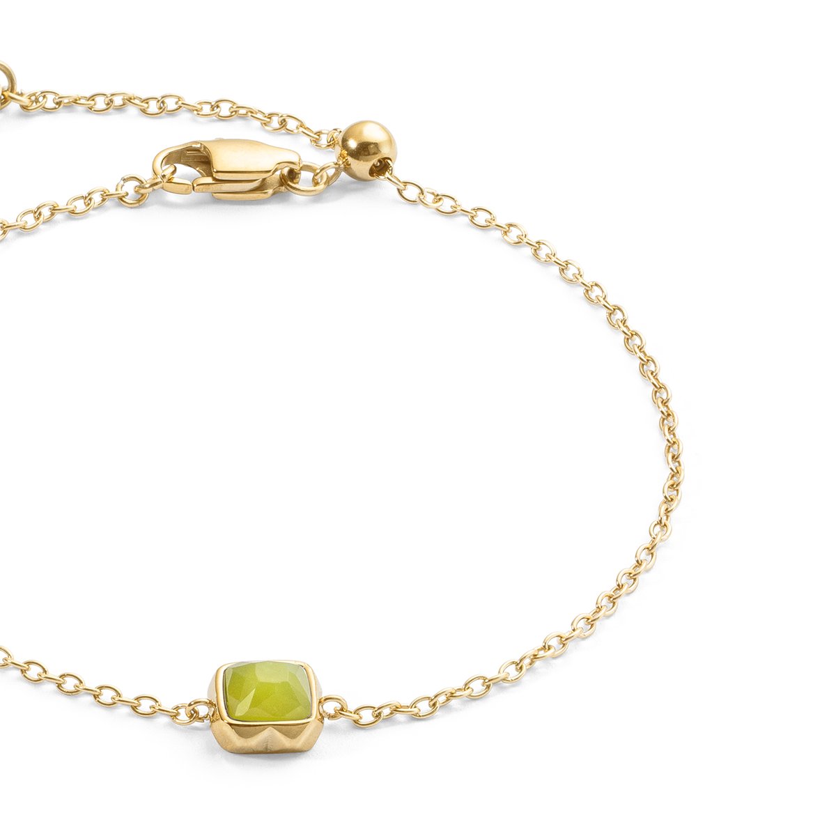 Discover the fascinating COEUR DE LION Birthstone jewellery as an expression of your personality. Each birth month is associated with a specific natural stone* and a unique colour that carry a special meaning.For those born in August, this birthstone bracelet features a stunning green jade. Green jade is a gemstone that has been valued for centuries for its protective and healing properties. It symbolises peace, wisdom and balance and is often referred to as the «stone of heaven». Jade is not only said to promote prosperity and success, but also to help find inner balance and peace. Its soft, green colour is reminiscent of lush nature and conveys a feeling of freshness and vibrancy that is perfect for August. Available to match: necklace, stud earrings and charms for our hoop earrings. The Birthstone Collection, in the trendy spike design, is available in silver and gold.* Each stone is unique from nature. Colour variations are therefore possible.