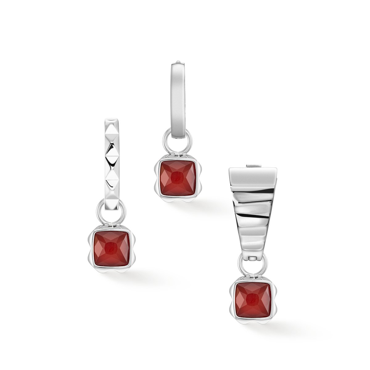 Discover the fascinating COEUR DE LION Birthstone jewellery as an expression of your personality. Each birth month is associated with a specific natural stone* and a unique colour that carry a special meaning. For those born in January, this birthstone charm features a stunning red agate, which symbolises vitality and passion. Available to match: necklace, stud earrings, bracelet and hoop earrings for the charms. The Birthstone collection, in the trendy spike design, is available in silver and gold. * Each stone is unique from nature. Colour variations are therefore possible.