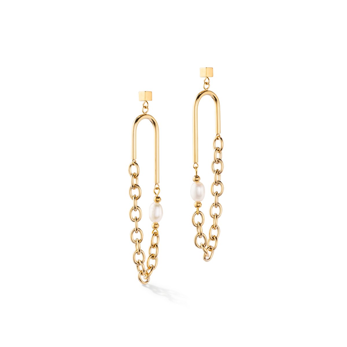 Wow — these extravagant boho earrings in gold are real eye-catchers. Genuine freshwater pearls are twinned with delicate chains, which are on trend right now. They give a simple outfit a little pizzazz or round off your evening wear.