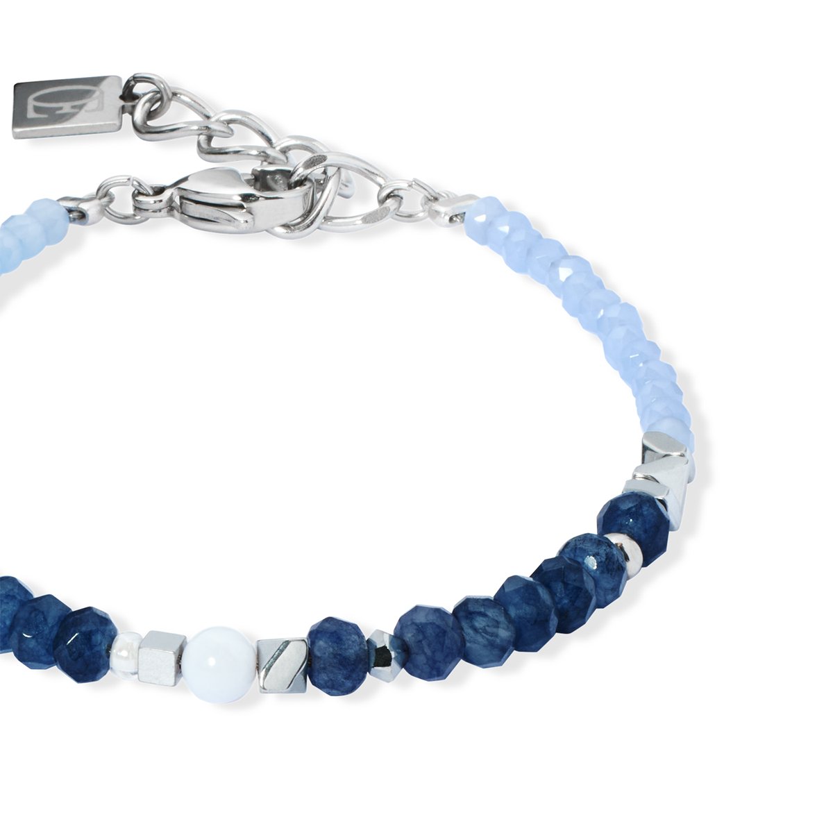 Energy meets design — the Modern Future silver-blue bracelet combines cool chalcedony, brightly coloured jade and faceted glass to create an accessory that never stands still. Versatile and yet eye-catching, it goes perfectly with clean looks or as a contrast to warm colours.