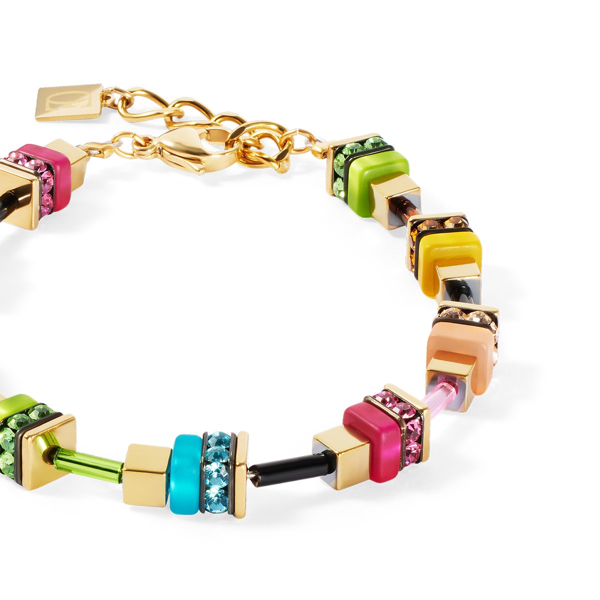 Colourful, playful, full of energy — the Boho Sunset Cube rainbow bracelet combines the iconic GeoCUBE® design with a vibrant colour gradient of polaris cubes, shimmering Swarovski® crystals and shiny rhinestone elements. A real statement for anyone who loves boho vibes.
