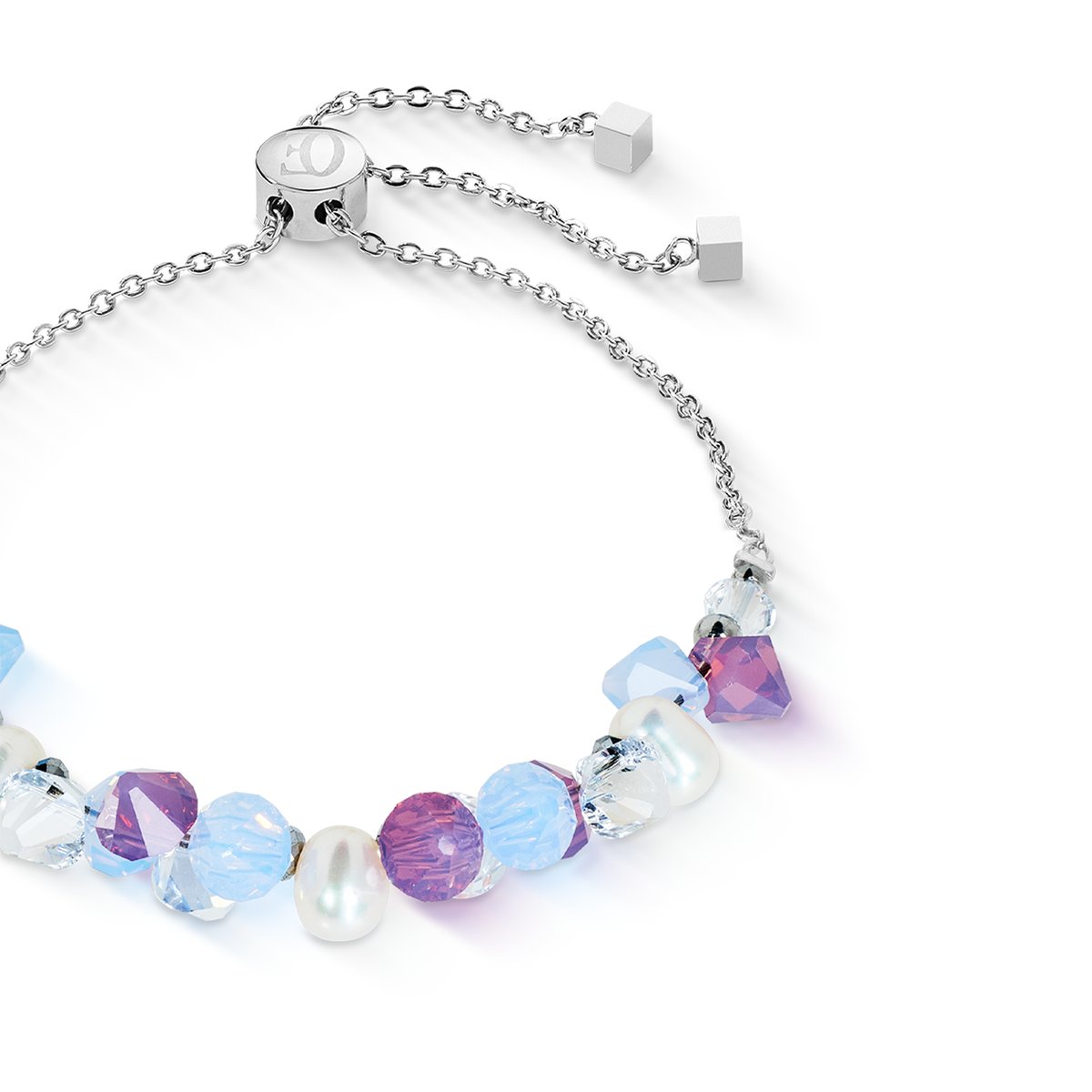 Playful, stylish, in love with detail: this bracelet is the ideal complement to the necklace from the Dancing Crystals & Pearls range. The combination of delicately shimmering freshwater pearls and brilliant-cut Swarovski crystals in lilac and blue makes it a colourful highlight on the wrist. The finely crafted pull clasp allows the bracelet to be adjusted flexibly — worn alone or as a set, it is a feminine eye-catcher with a sparkling character.