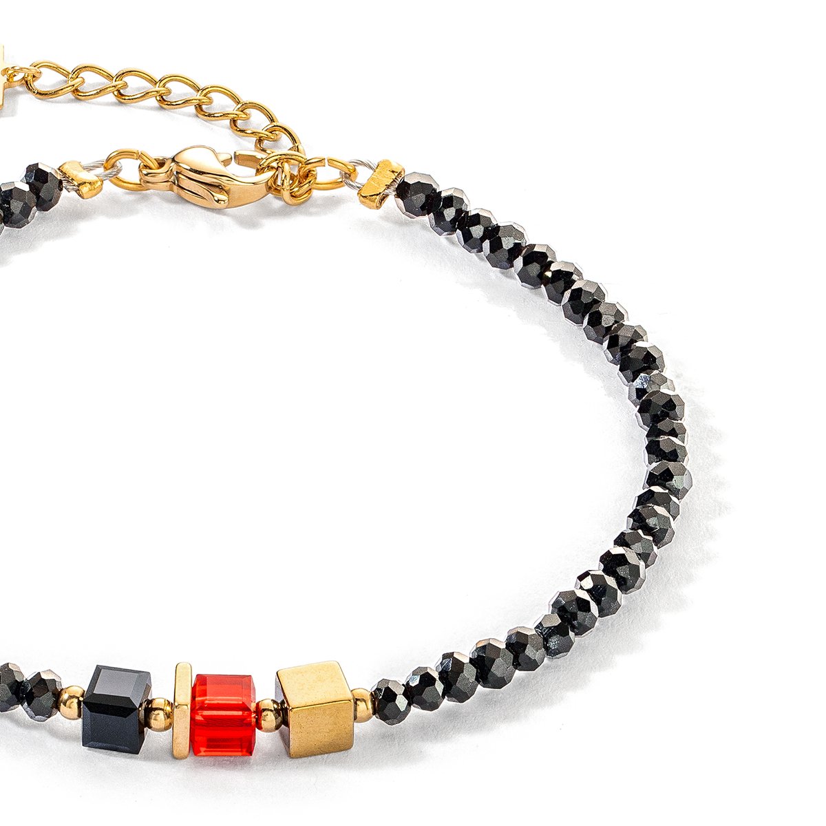 Support your team at the European Football Championship – with the stylish COEUR DE LION EURO Germany / Belgium bracelet in sparkling black, red and gold. The bracelet, made of sparkling crystals, incomparable Swarovski® crystals and elegant hematite with titanium oxide finishing in gold, can be worn both elegantly and casually.