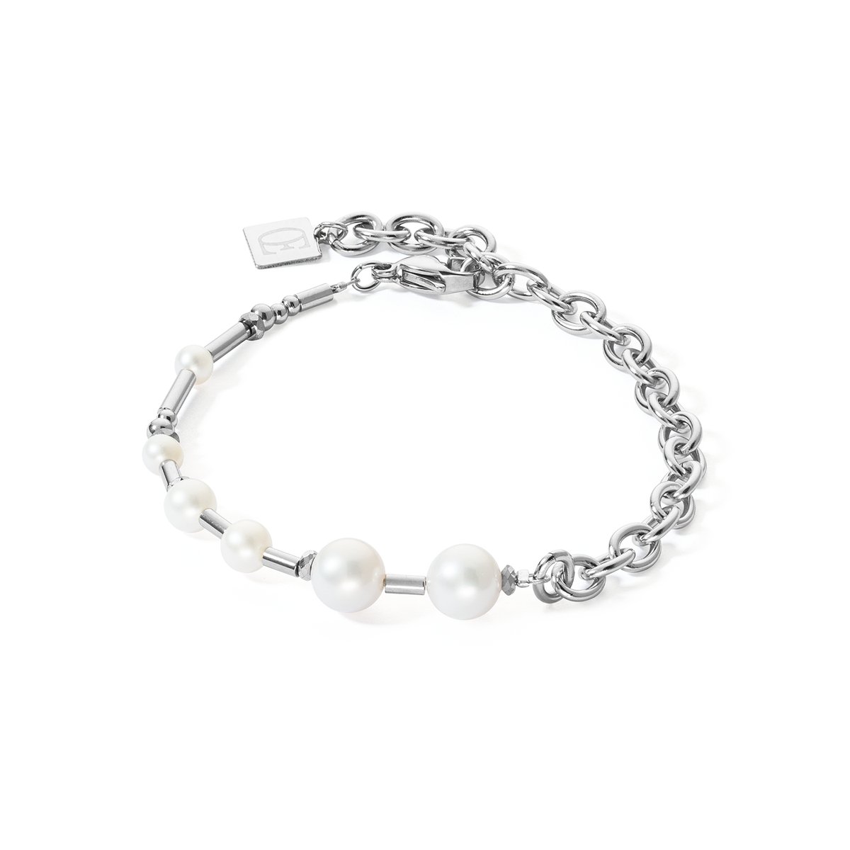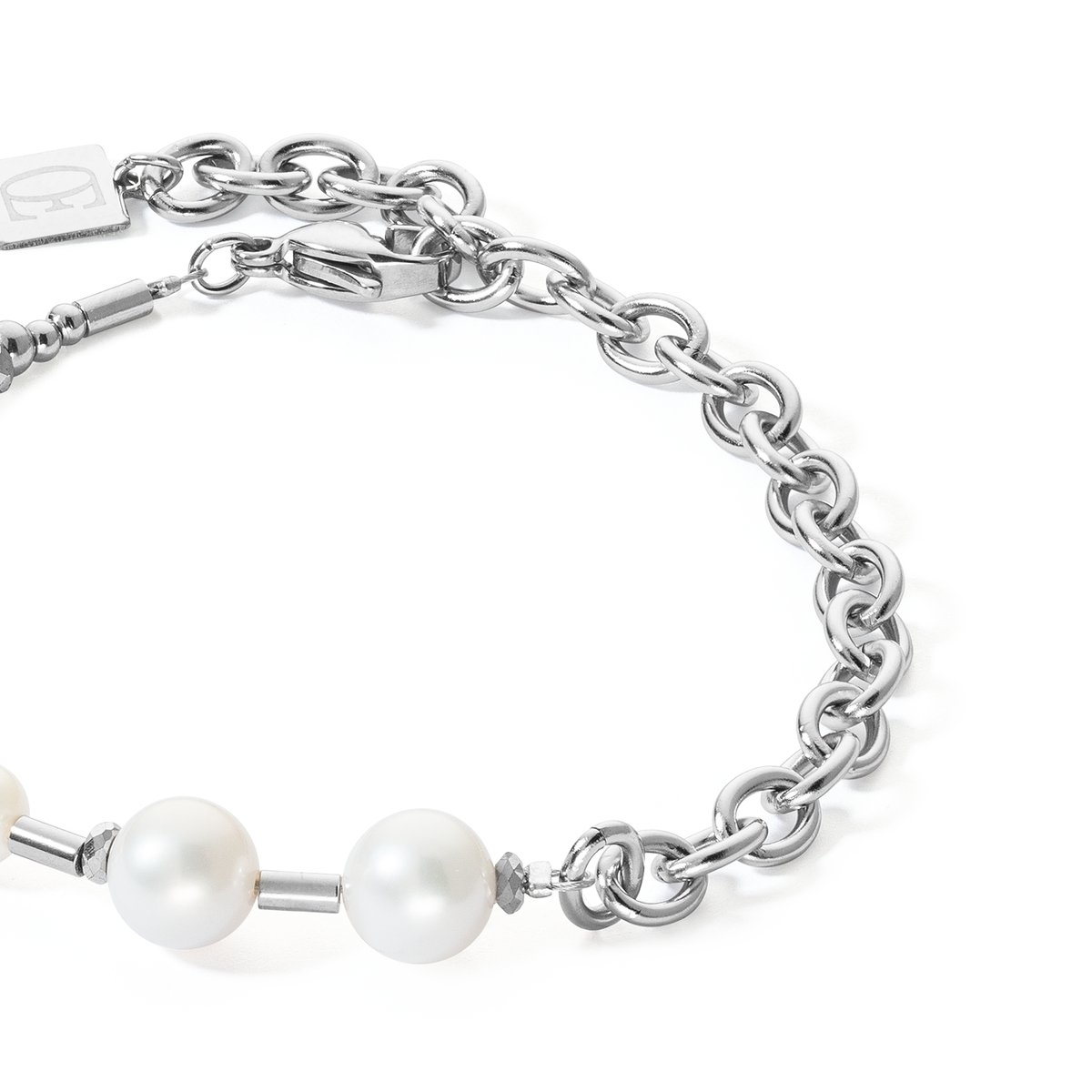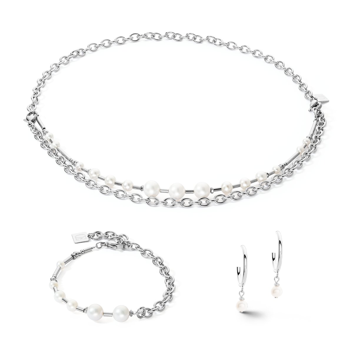The silver multiwear chain bracelet with freshwater pearls is a contemporary piece of jewellery which can be worn with different outfits on a range of occasions. Worn along or with other bracelets, it will add a touch of elegance to your wrist and give your look a modern edge. You can also incorporate the bracelet into the necklace if you like.