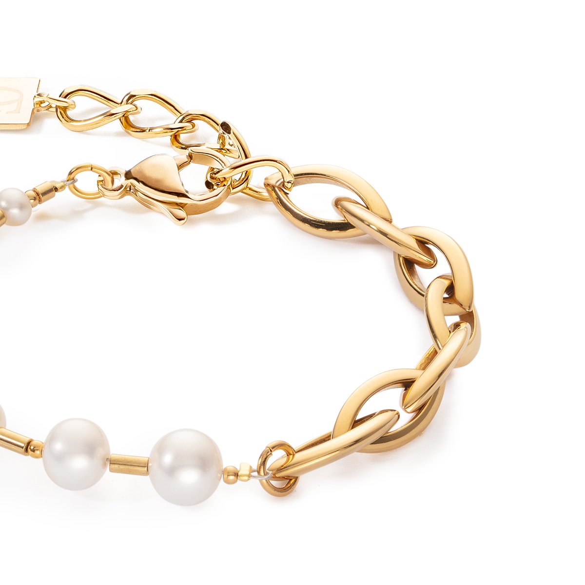 The combination of genuine freshwater pearls, gold chain and asymmetry make this bracelet a graceful, elegant choice. Don’t miss the matching multiwear necklace too.
