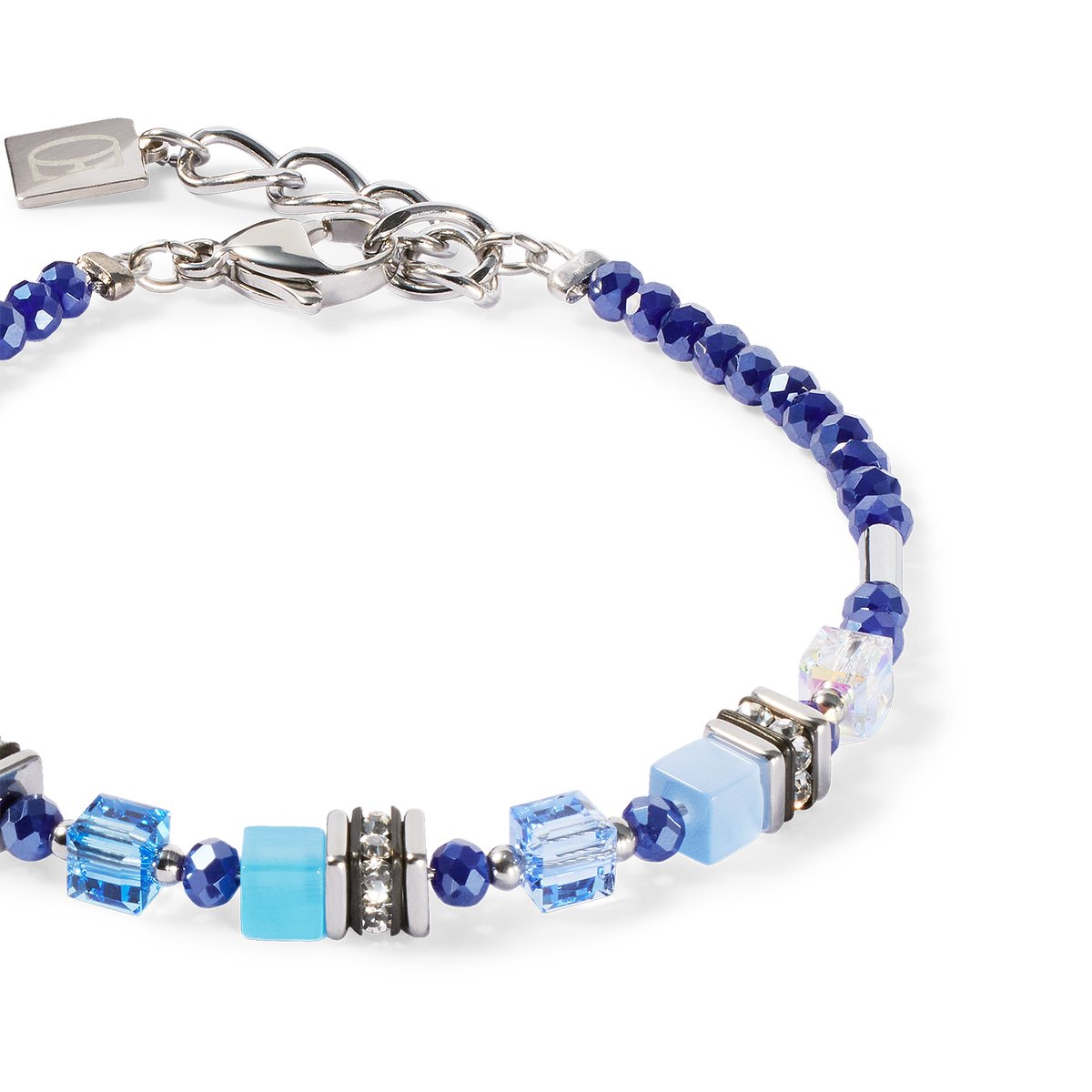 Minimalist, cool and easy to combine — the Mini Cubes blue bracelet plays with mini GeoCUBE® elements, sparkling Swarovski® crystals and silver-coloured stainless steel. A modern basic with character.