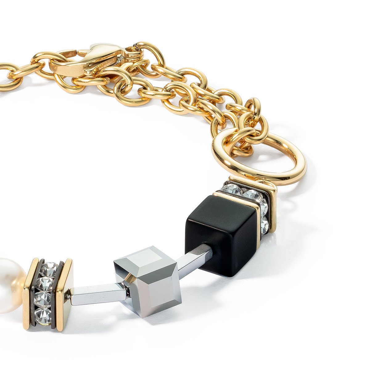 Round off your trendy, stylish look with the Mysterious Mix bracelet in gold and black. Large GEOCUBE® beads and chunky golden chain come together in a bold, unique design which is bound to make quite an impression.