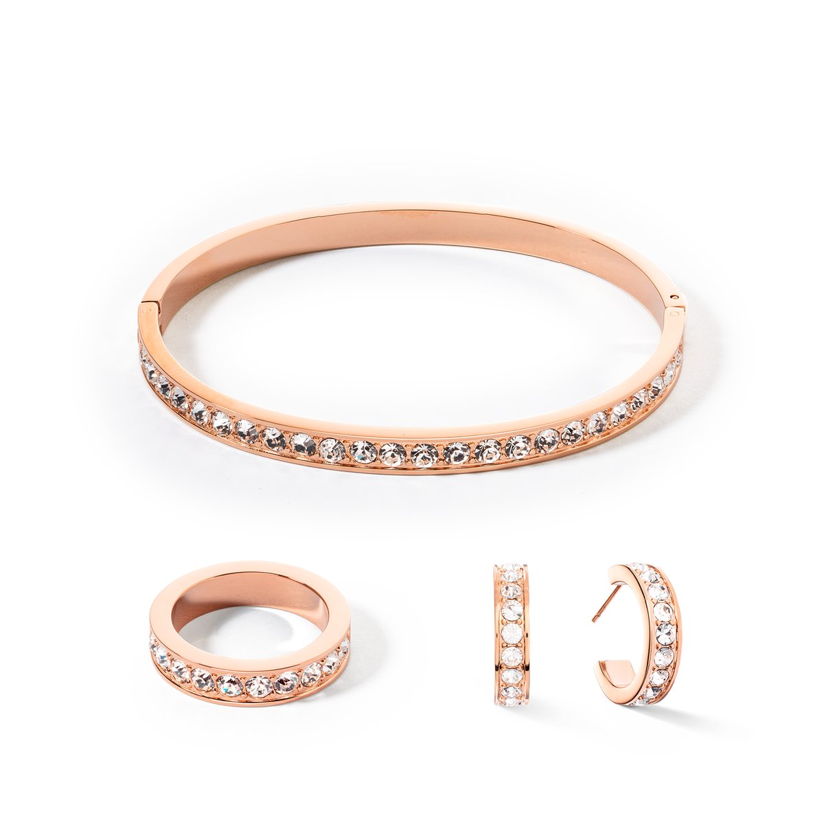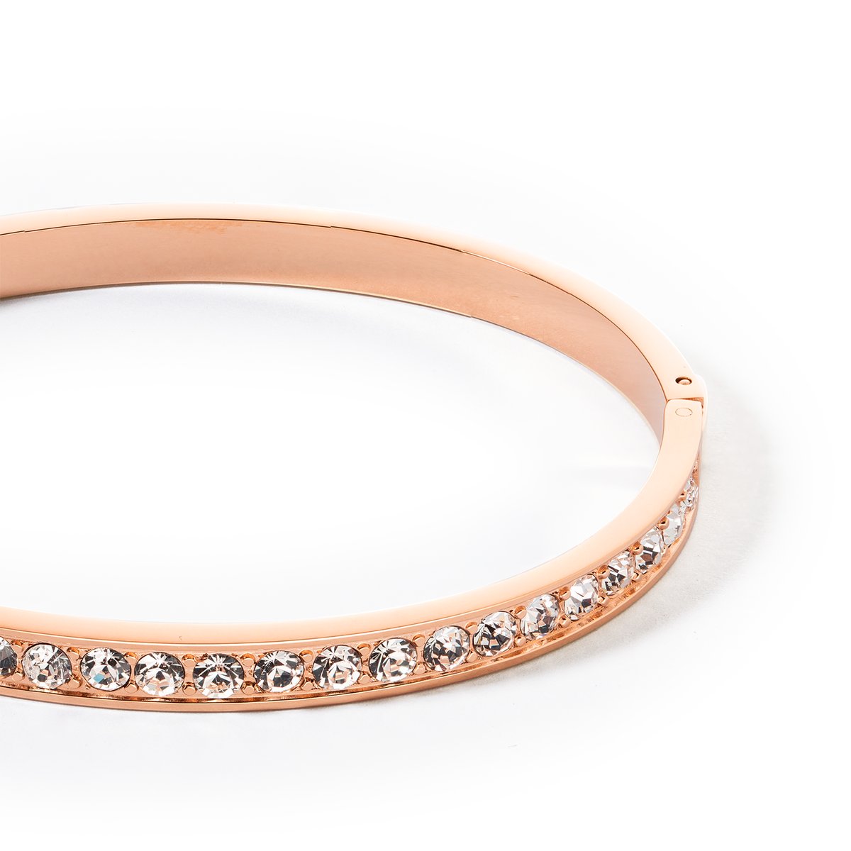 Bangles are stunning worn individually and look great with other bracelets too. Find your favourite combination featuring this elegant design in rose gold with shimmering crystals.
