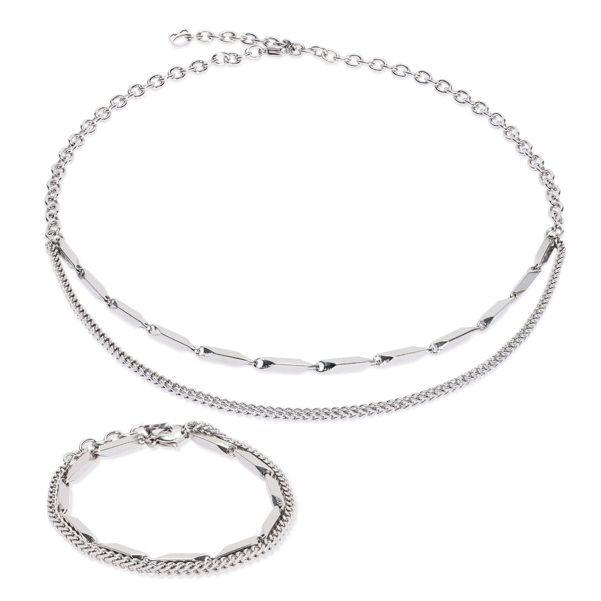 The Twisted Layers bracelet will spice up your jewellery game! Two delicate stainless steel chains merge into a casual layering look that is easy to combine. The twist? The elongated twisted elements create a modern eye-catcher. Whether in elegant silver or warm gold, this bracelet is your perfect companion, solo or mixed with other favourite pieces. Tip: combine it with the Twisted Layers necklace for the ultimate matchy look!