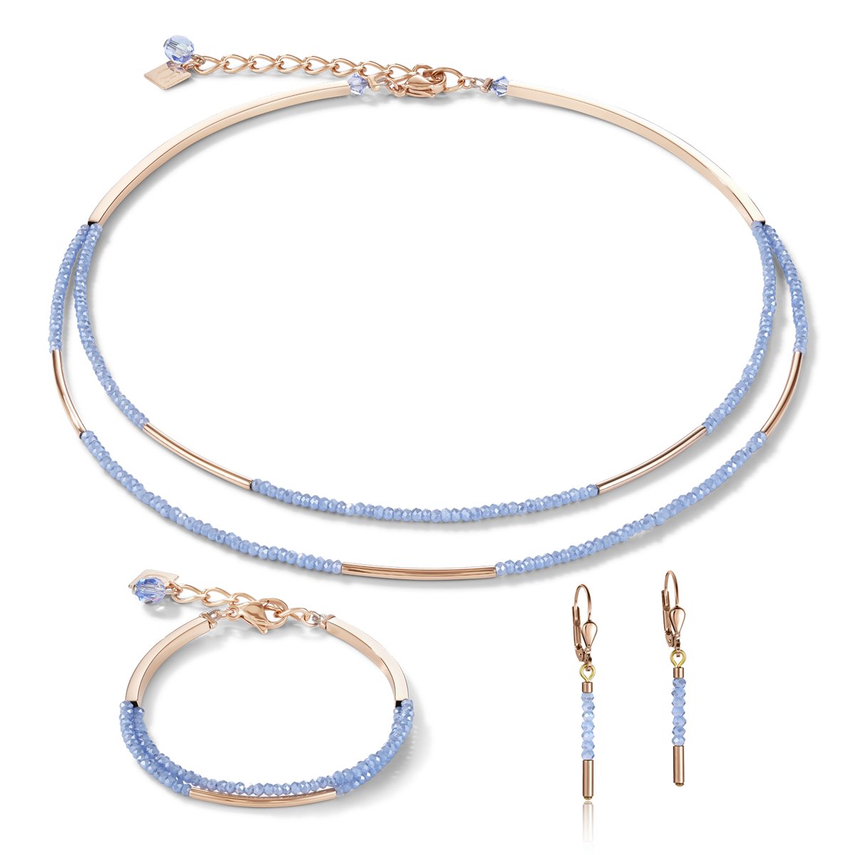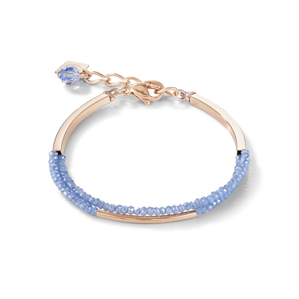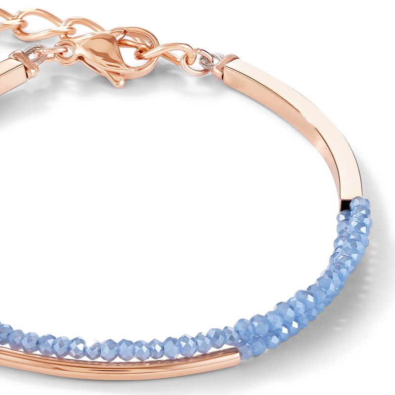 Bracelet Waterfall small stainless steel rose gold & glass light blue