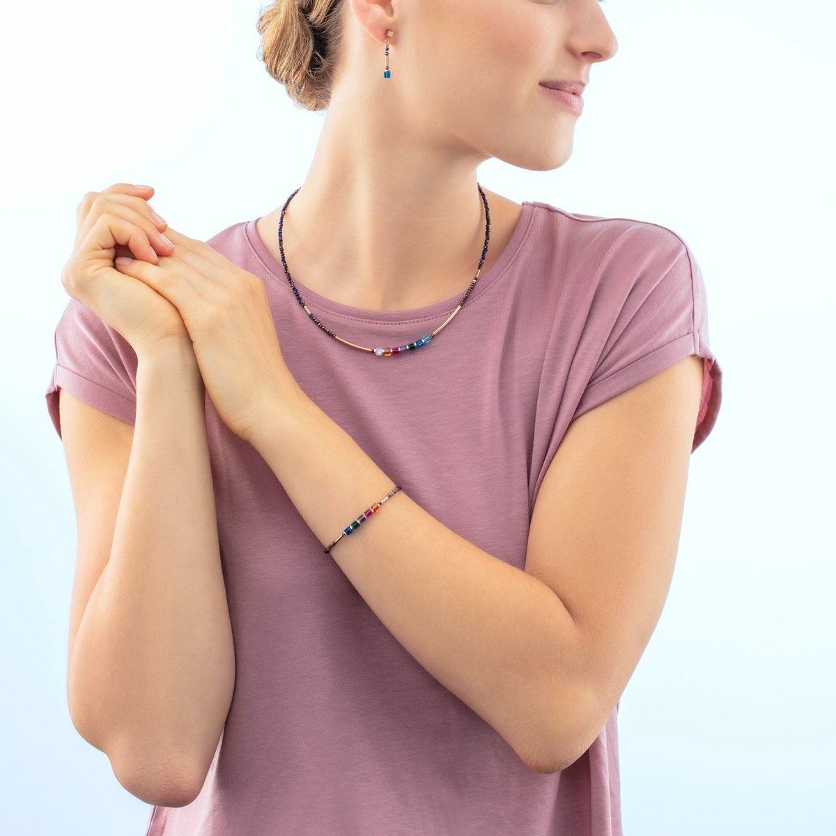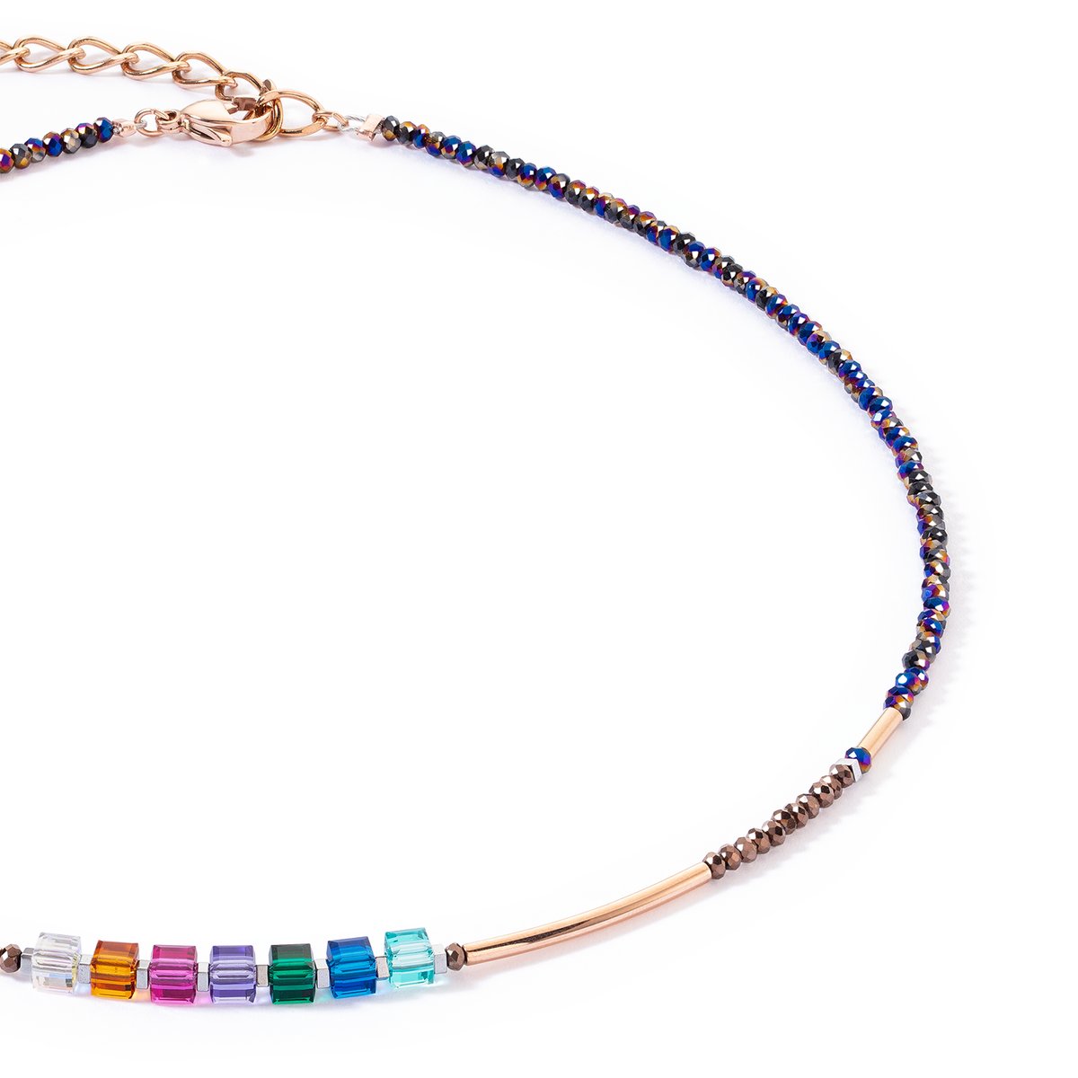 Cube Story Minimalistic Sparkling Necklace Multicolour Autumn — play of colour meets modern elegance Add a touch of colour and sophistication to your look with the Cube Story Minimalistic Sparkling Necklace in the Multicolour Autumn version. This trendy necklace combines understated elegance with a sparkling mix of colours that is perfect for the autumn season. The minimalist cubes in bold colours such as turquoise, blue, green, purple, pink and orange, framed by rose gold elements and sparkling crystal beads, give the design a modern, glamorous touch. The delicate rose gold plating and filigree design make this necklace a versatile accessory that is perfect for everyday wear as well as special occasions. The dark multicolour nuances create a stylish yet eye-catching look that can be wonderfully combined with other pieces of jewellery. Whether worn solo or in a layered look, the Cube Story Minimalistic Sparkling Necklace Multicolour Autumn makes a fashion statement and brings a breath of fresh air to your jewellery collection. Perfect for anyone who loves modern elegance with a touch of colour!