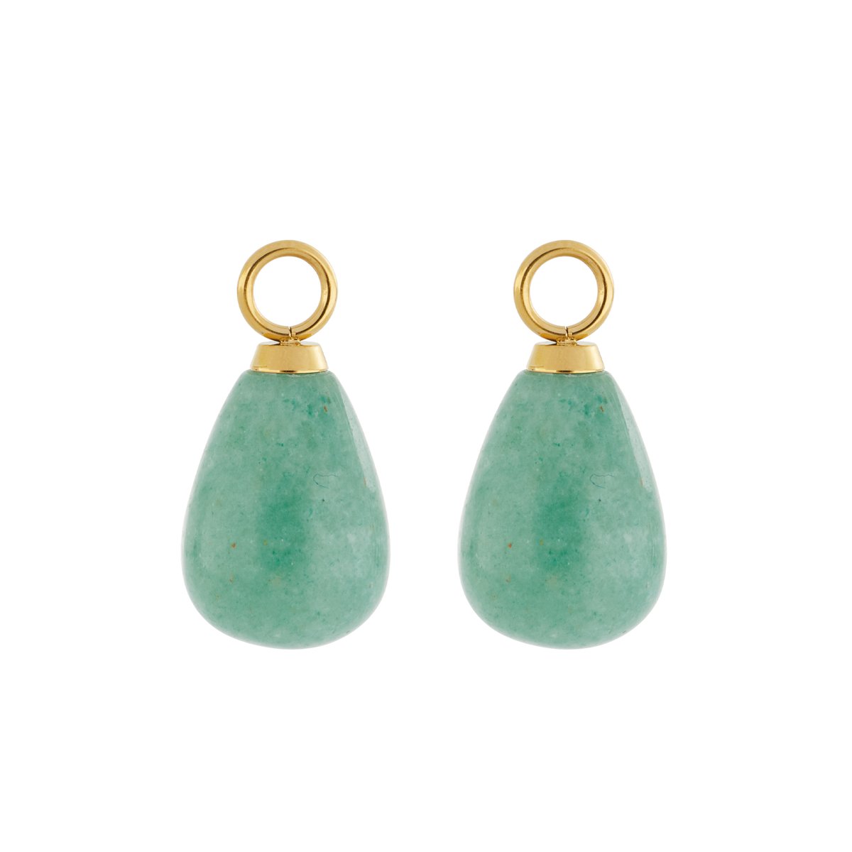 Stylish expression meets natural stone: the gold and green agate charm drop is part of the EAR ME UP collection. Set in gold-plated stainless steel, it can be attached to your hoop earrings in a variety of ways — individually, as a pair or in a mix. Mix, change & create your own look.Our EAR ME UP charms always come in pairs.