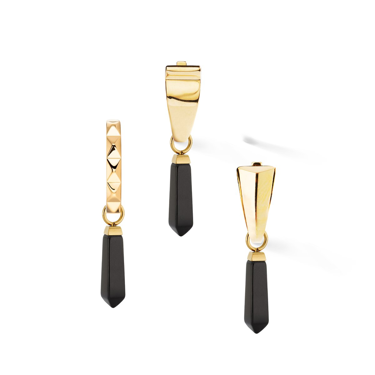 Clear, edgy and powerful: the onyx obelisk in gold is a strong part of the EAR ME UP collection. For customised combinations — hang up and restyle. Mix, change & create your own look.Our EAR ME UP charms always come in pairs.