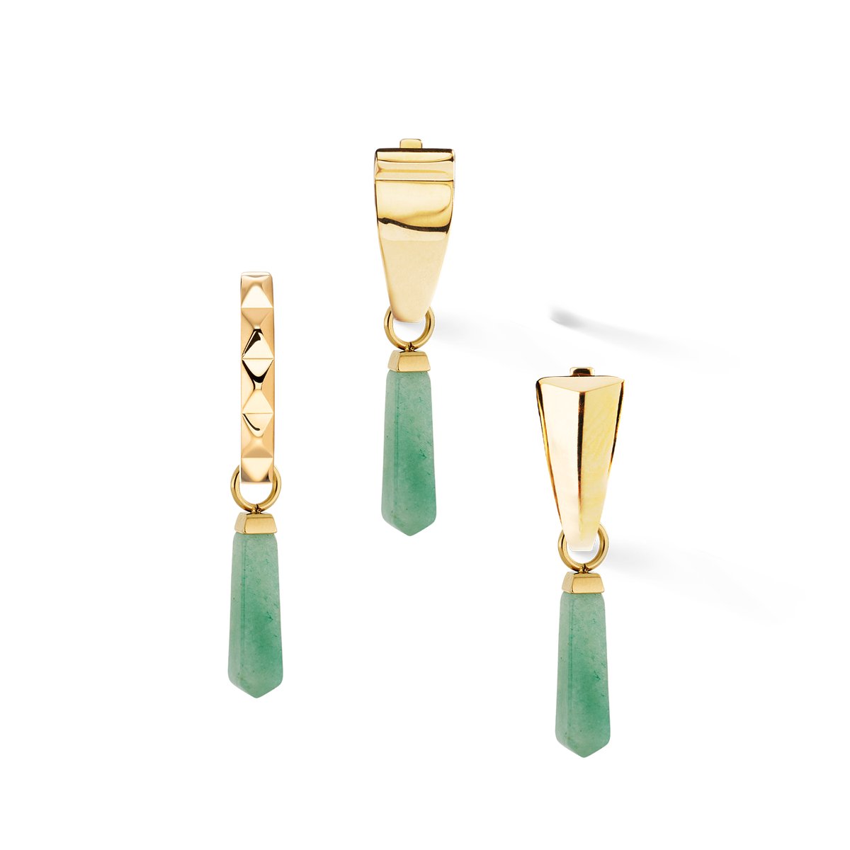 The Obelisk gold-green charm combines green agate with clear geometry. Part of the EAR ME UP collection, it can be flexibly attached to hoop earrings and freely combined. Mix, change & create your own look.Our EAR ME UP charms always come in pairs.
