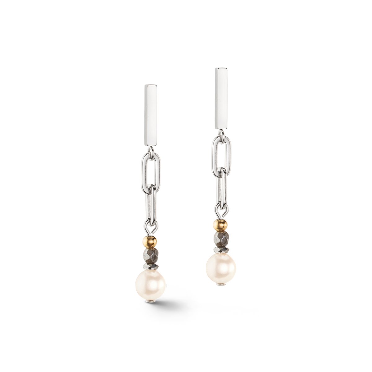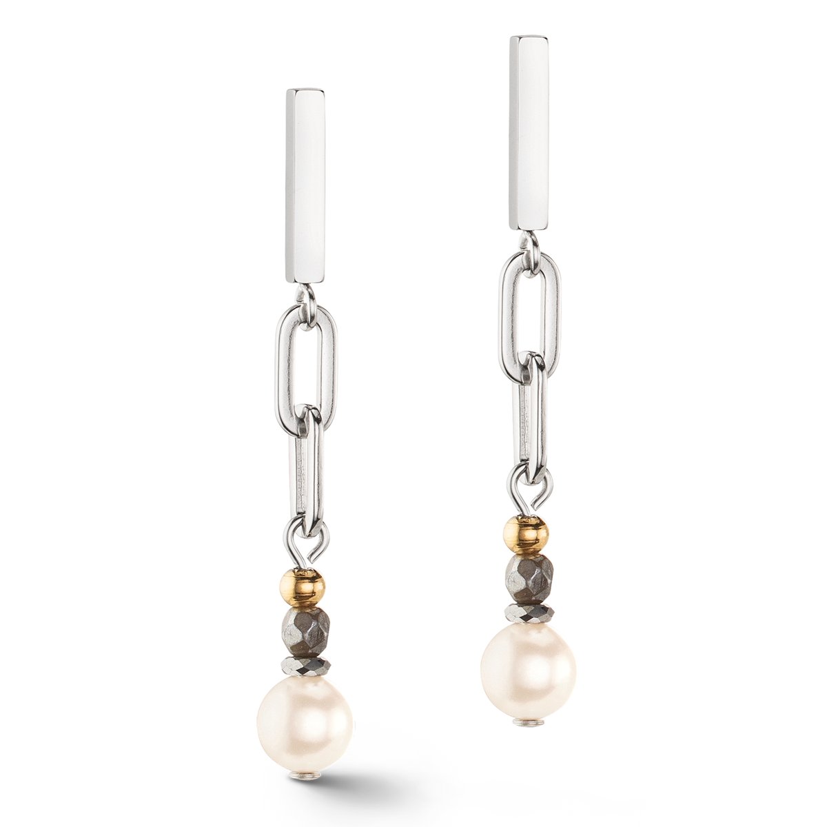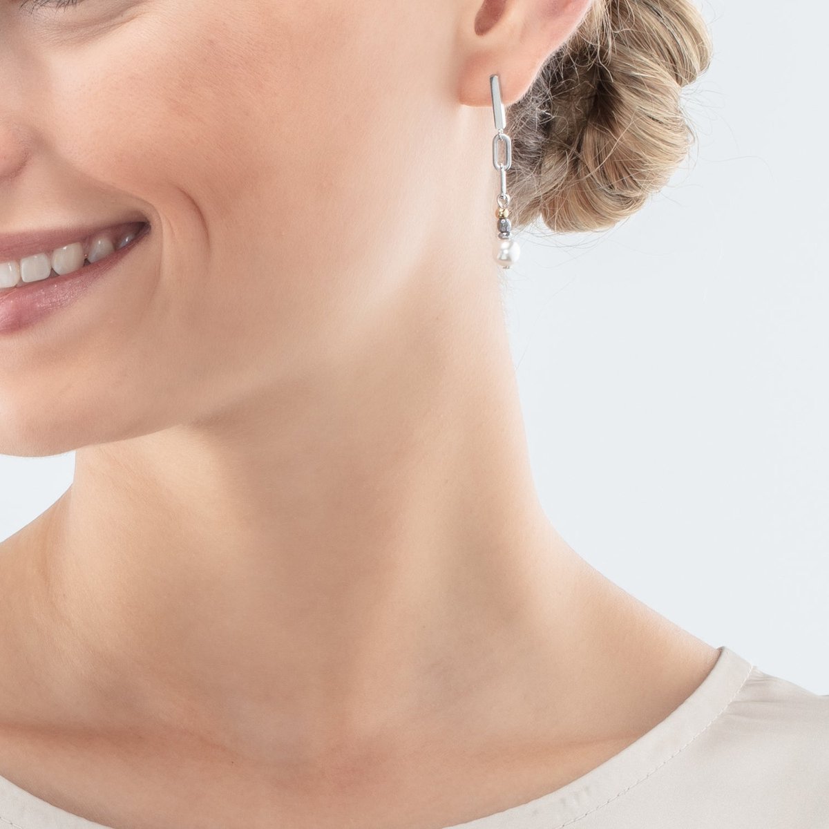 Classic stud earrings which fuse a classic link chain in silver with a Crystal Pearl.