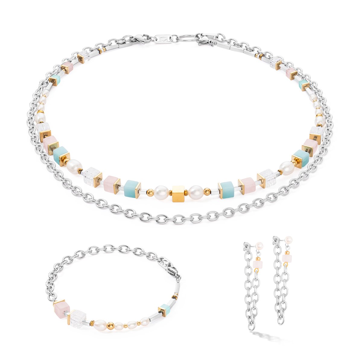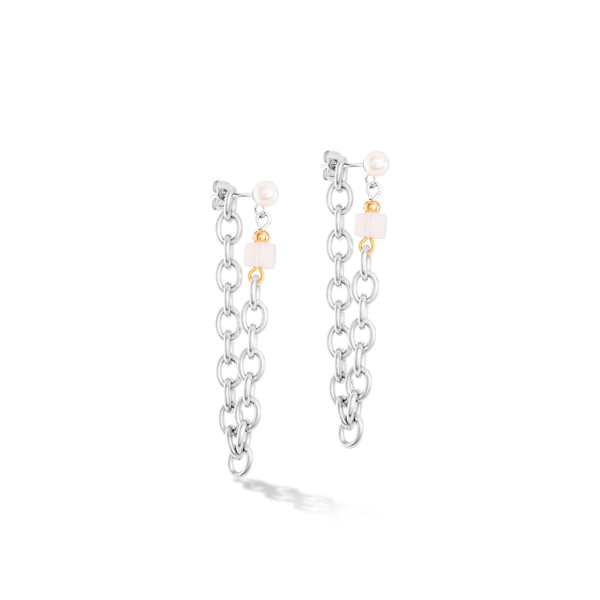 Discover the elegant and modern Cool Romantic Cubes & Pearls bicolour earrings with the fascinatingly simple multi-wear option. You can either wear the chain earrings as a long version or transform them into shorter double-row earrings in one simple movement.