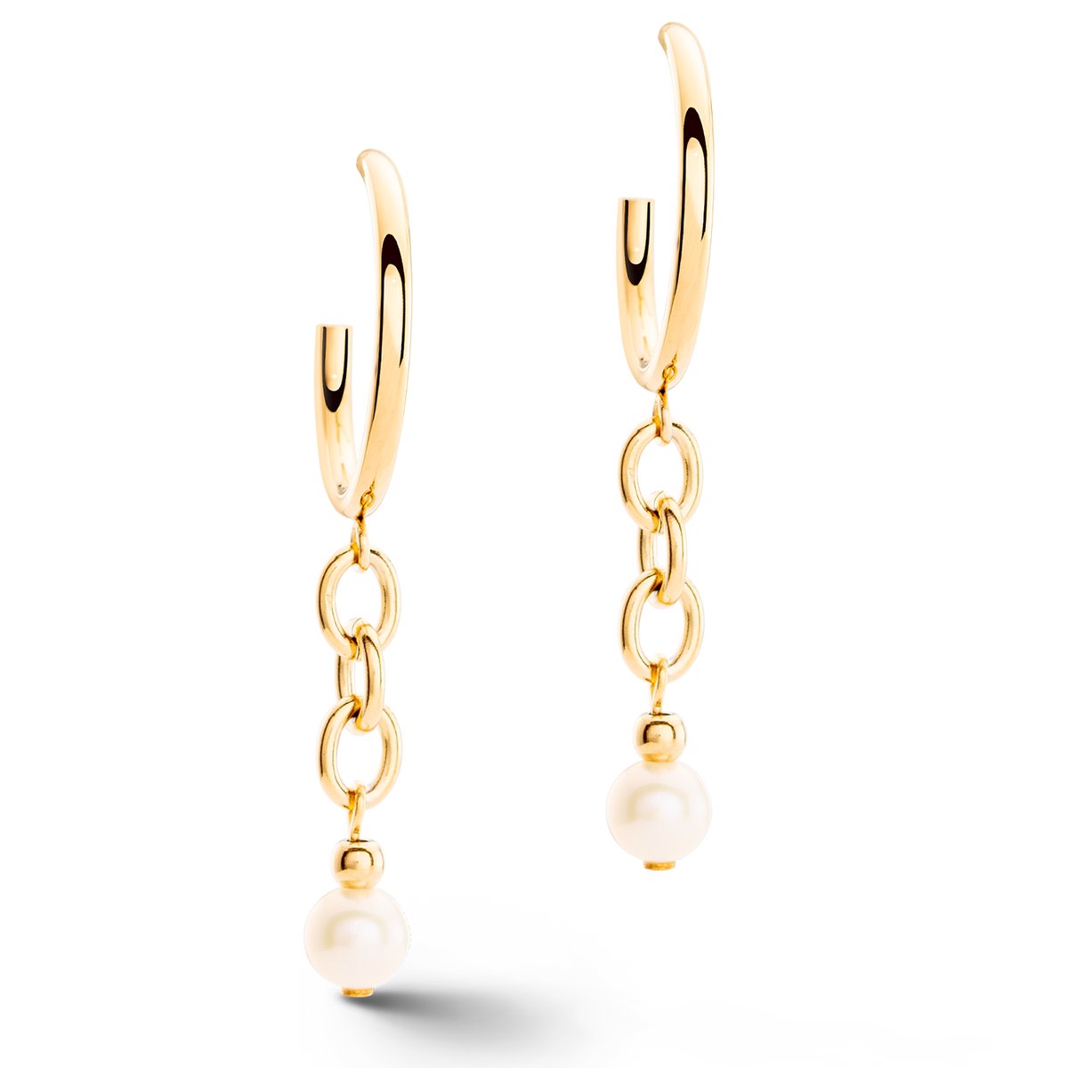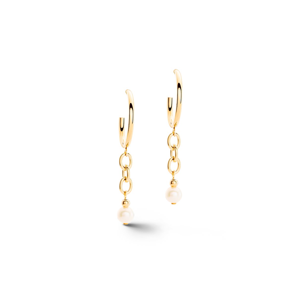 These hoop earrings with a chain and freshwater pearl complement the Navette Y-shaped necklace with freshwater pearls beautifully and round off the look perfectly. Together, they make a harmonious set and add a modern, stylish touch to your look. You can also wear the earrings on their own to add a splash of elegance to your outfit.