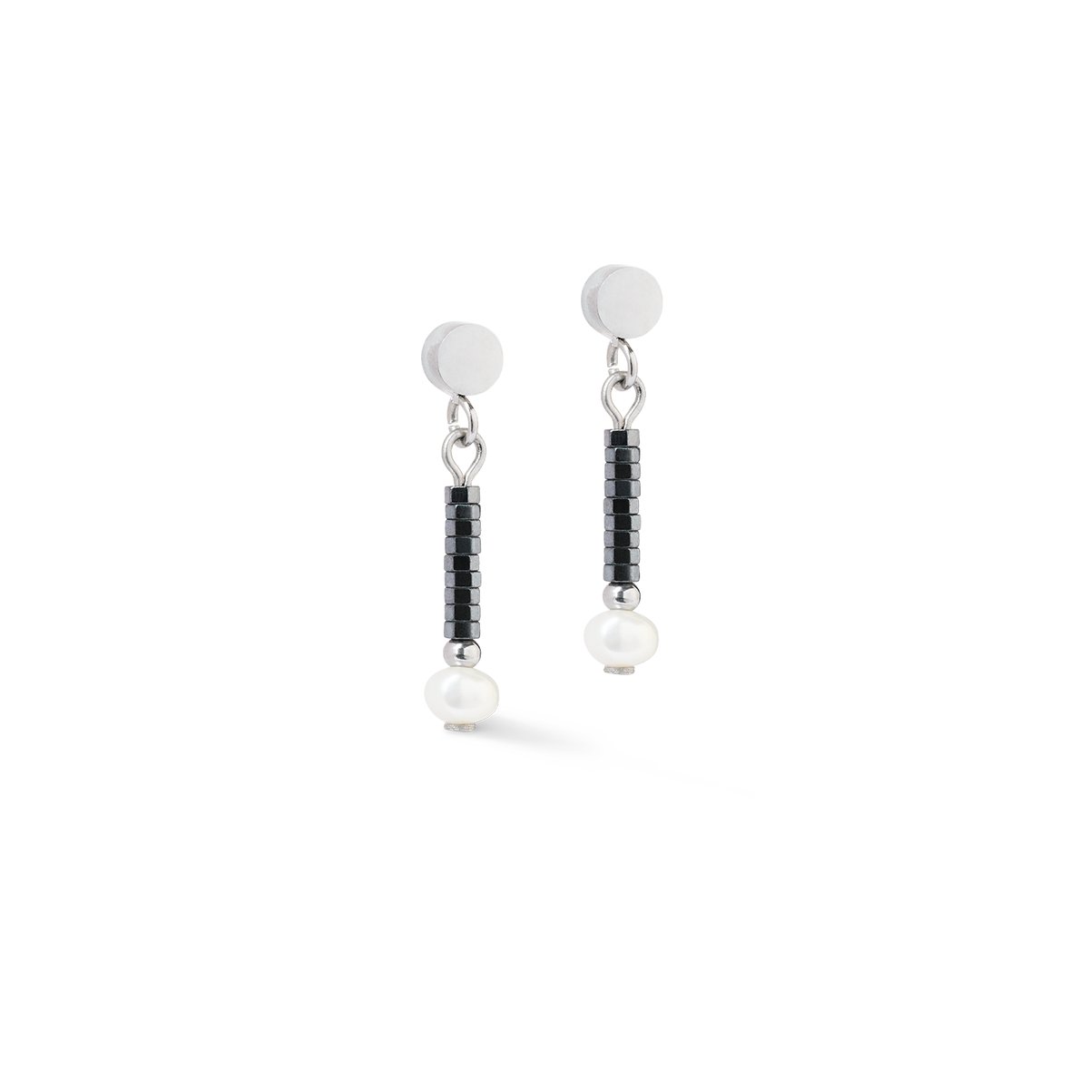 Slim, shiny, a little edgy: the Edge & Grace earrings in anthracite silver focus on a clear vertical line made of haematite, stainless steel and a shimmering freshwater pearl as a finishing touch. Light yet effective — for anyone who appreciates understated coolness and loves clear shapes.