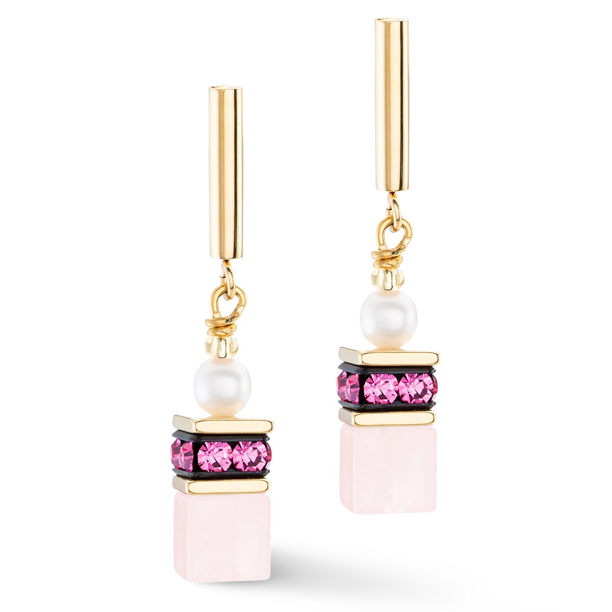 The GeoCUBE® Fusion Precious Pearl Mix earrings in gold-pink are a stunning piece of jewellery that will add a unique and glamorous touch to your look. These earrings combine the iconic GeoCUBES® in pink with real freshwater pearls, creating a fascinating contrast.