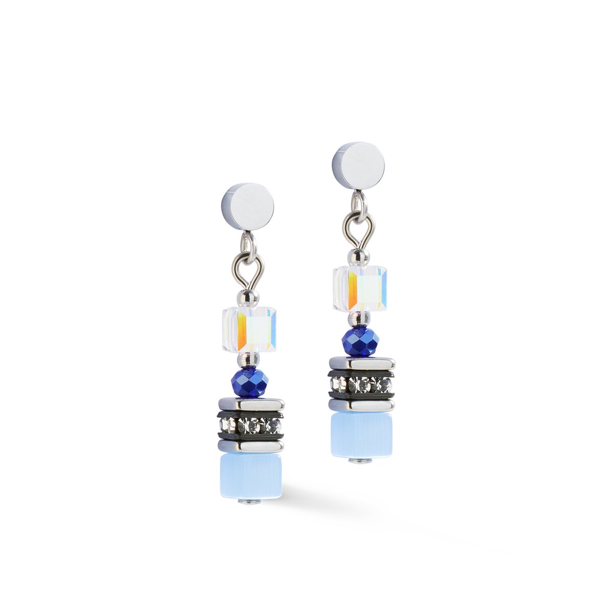 Simple but full of charisma — the Mini Cubes blue earrings combine deep blue Mini GeoCUBE® elements with shimmering Swarovski® crystals and cool silver elements. A modern, light design for anyone who loves clear colours and pure elegance.