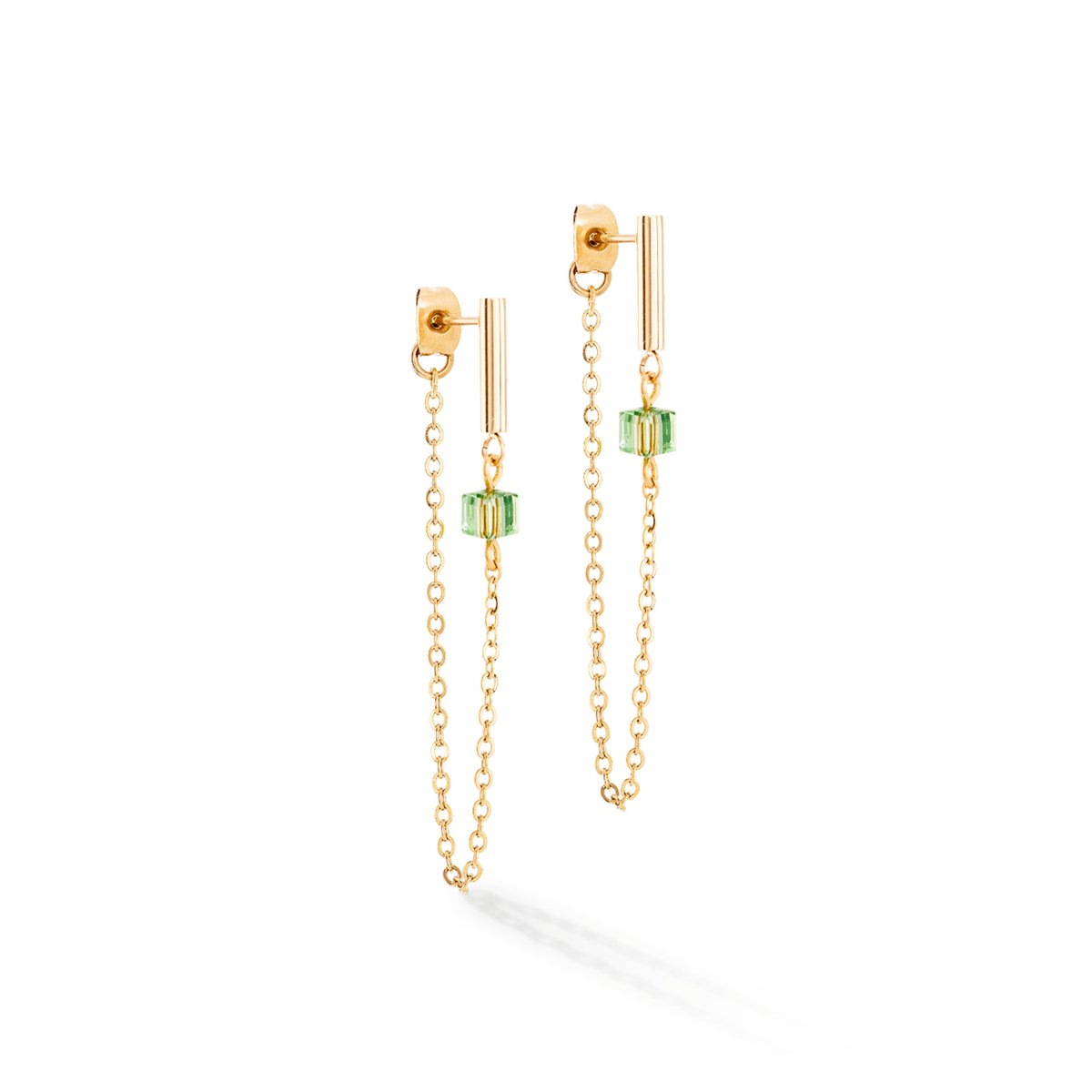 The Mini Cubes & Chain earrings in gold-green are modern earrings in a loop design.