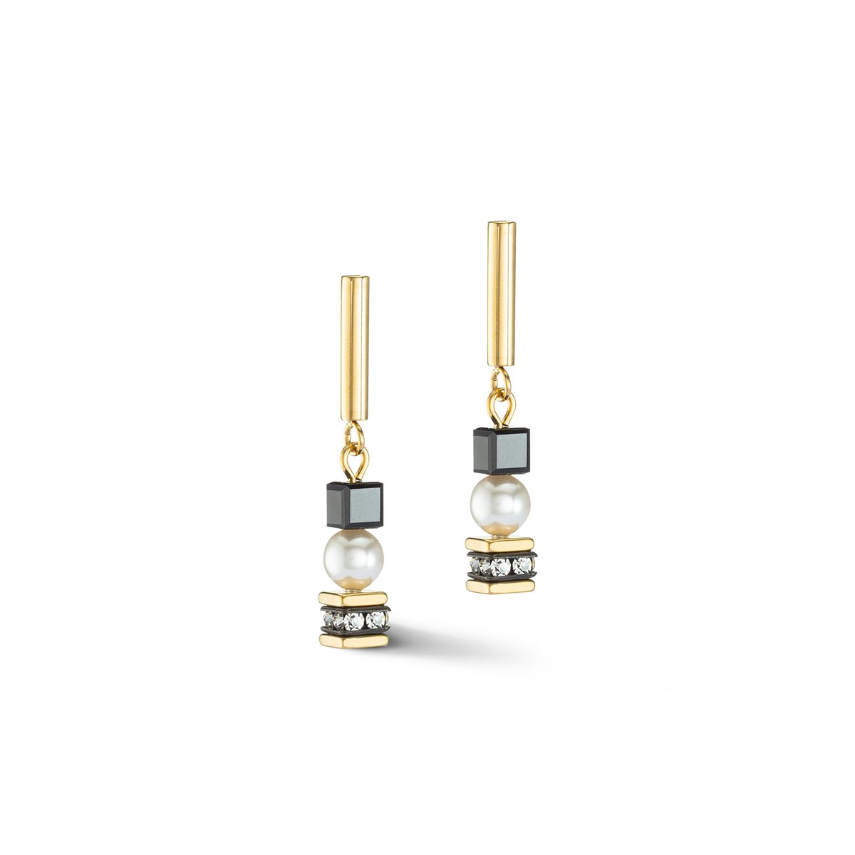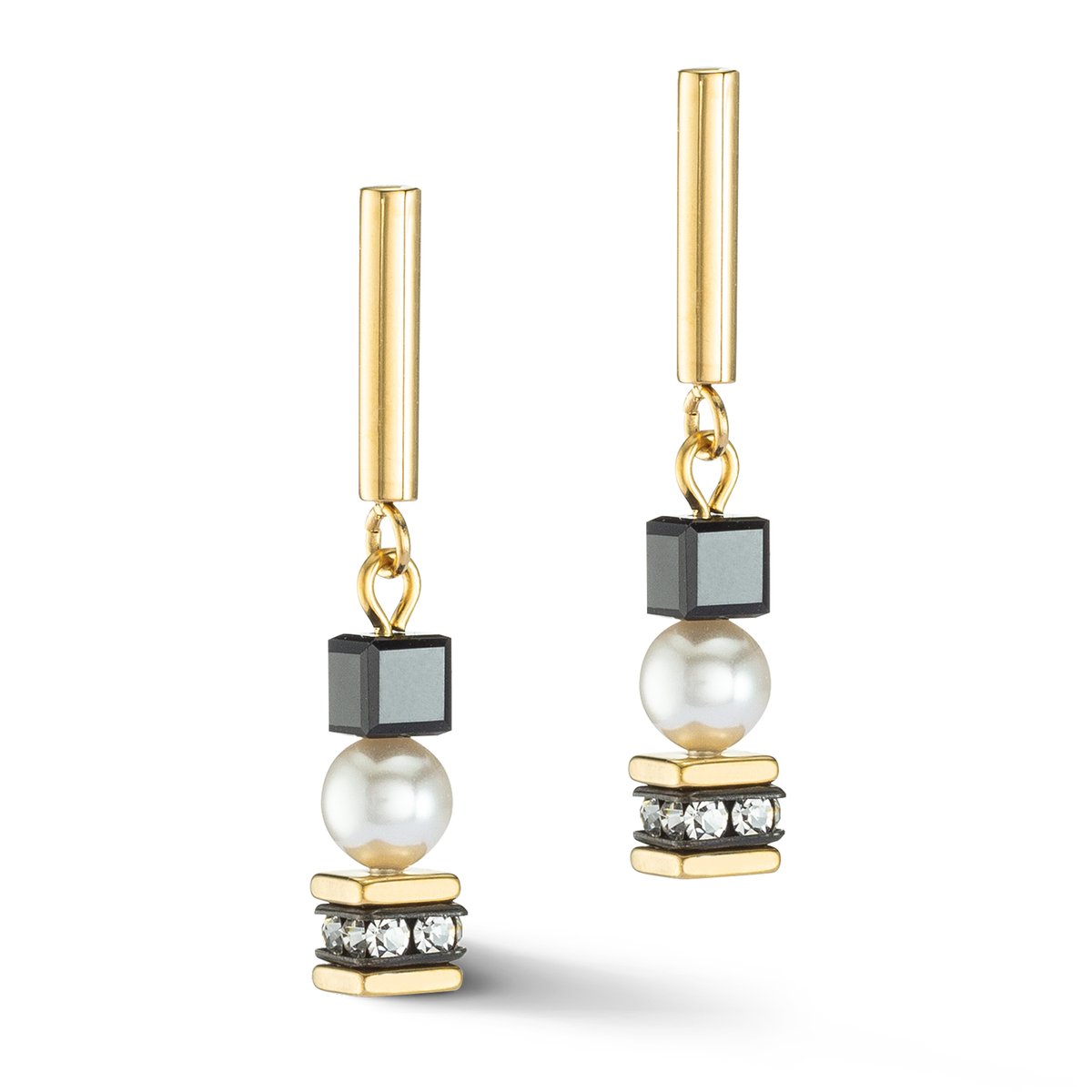 Breathtaking Mysterious Cubes & Pearls! Timeless, elegant black Swarovski® crystals are combined with sophisticated crystal pearls to dramatic effect, creating earrings which are both light and elegant. Complement this style with the Mysterious Cubes & Pearls gold and black bracelet and necklace.
