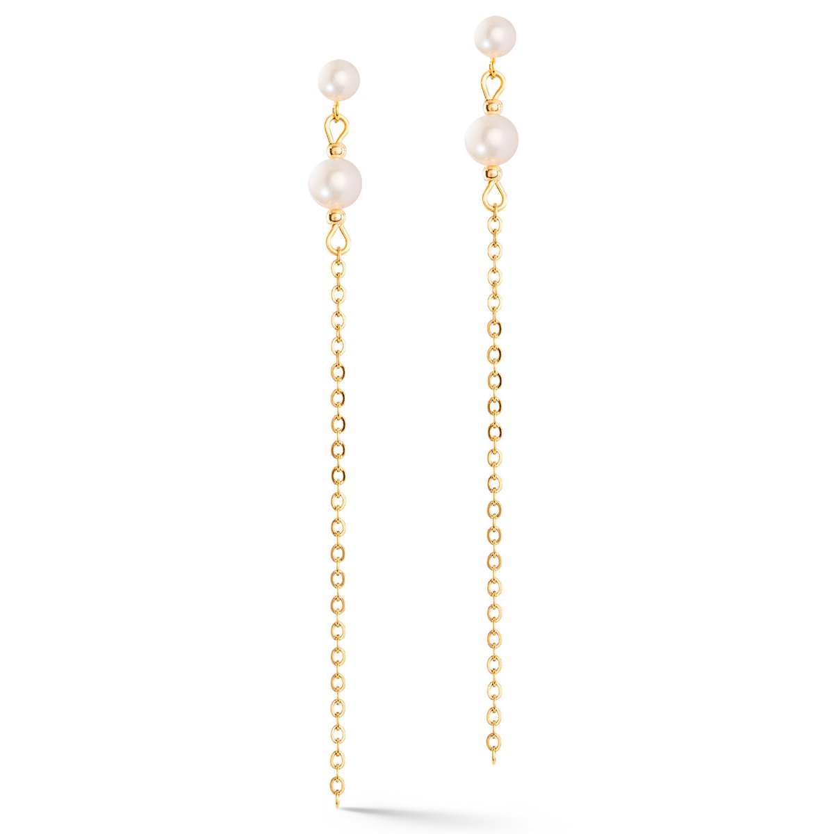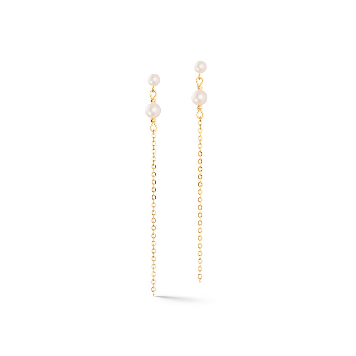 Delicate earring in gold with freshwater pearl in a light chain look.