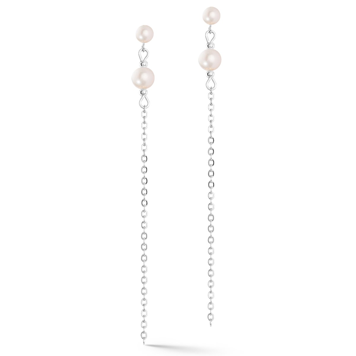 Delicate earring in silver with freshwater pearl in a light chain look.