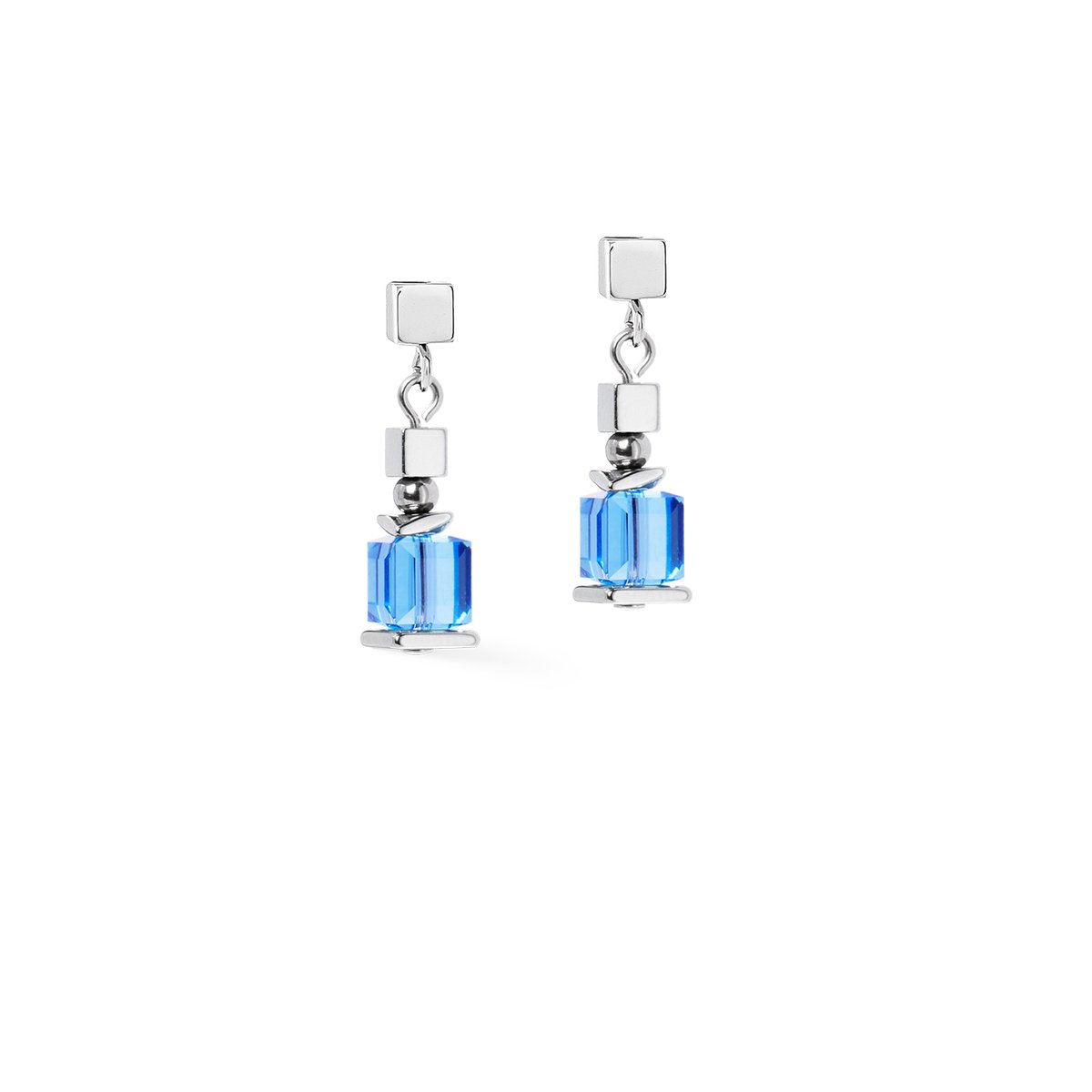 The earrings from the Sparkling Cubes Fusion Chain series create targeted highlights in cool crystal colours. Two cut Swarovski® crystals of different sizes reflect the interplay of dimensions and light. In combination with the cool silver tone of the stainless steel, they create a modern, sparkling statement — inspired by Sparkling Moments.