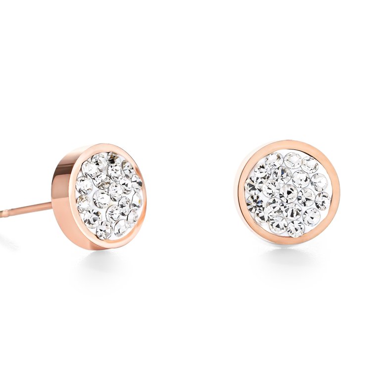 Fine stud earrings with crystals in a pavé setting. Matches the set. And your style.