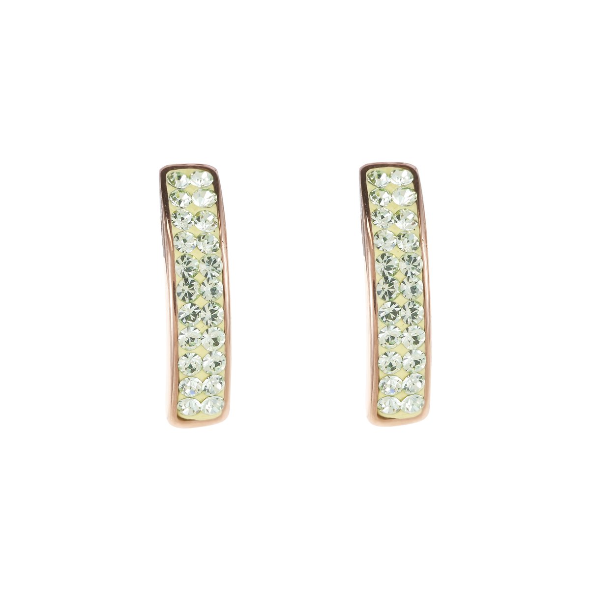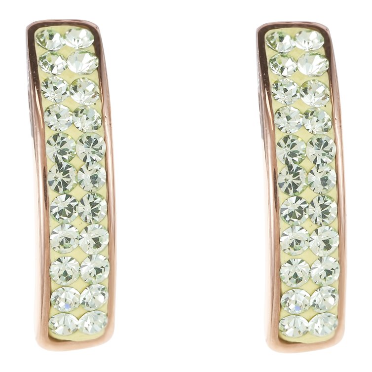 Earrings stainless steel rose gold & crystals pavé light green