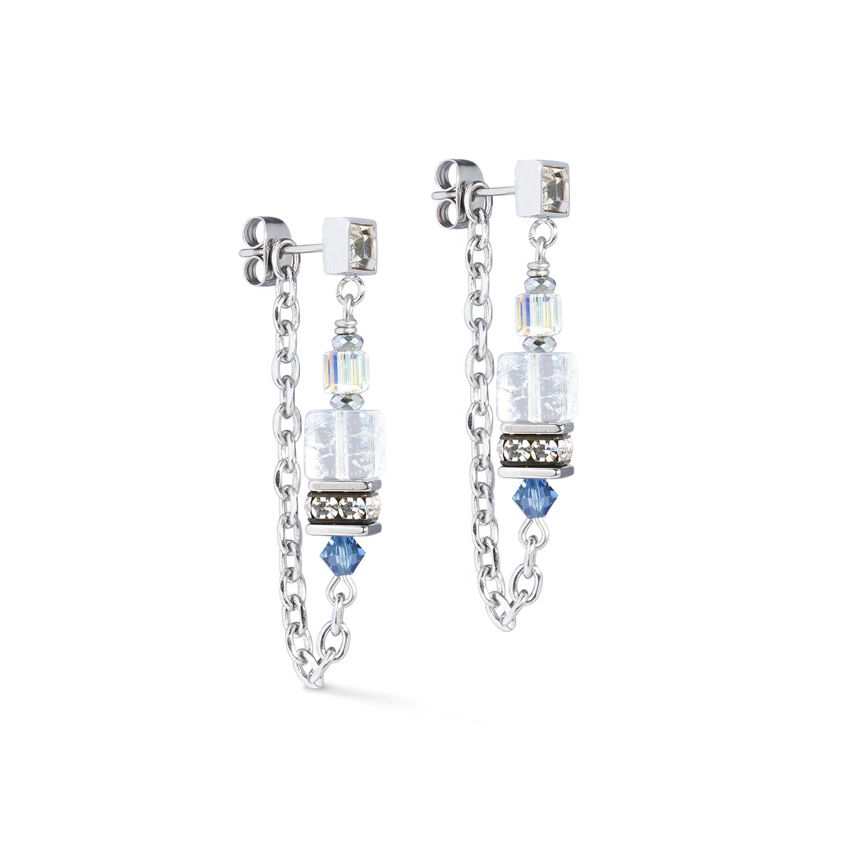 Delicate, playful but with character — the Sunray Cube Bohème silver and white earrings feature shimmering rock crystal cubes and radiant Swarovski® cubes that sparkle gently with every movement. Silver chain elements add a modern lightness and give the look a sophisticated yet casual feel.