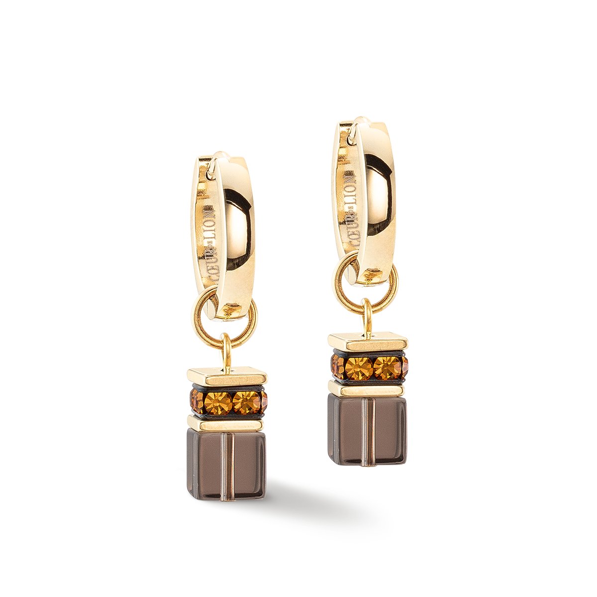 GeoCUBE® Chunky Chain hoop earrings gold-brown — Versatile chic for every occasion The GeoCUBE® Chunky Chain hoop earrings in gold-brown are the perfect accessory for style-conscious trendsetters like you. These sophisticated earrings combine the best of both worlds: elegant cubes of smoky quartz, which, in combination with the striking, gold-plated stainless steel elements of the hoops, create a luxurious look. The special feature of these earrings? You decide how you want to wear them. The hanging charms can be removed effortlessly — simply open the hoop, unthread the charm and you have a simple yet eye-catching earring that goes with any outfit. Whether you opt for the full version with the sparkling charms or the minimalist version without pendants, the GeoCUBE® Chunky Chain hoops offer you limitless styling options. A must-have for your jewellery collection!