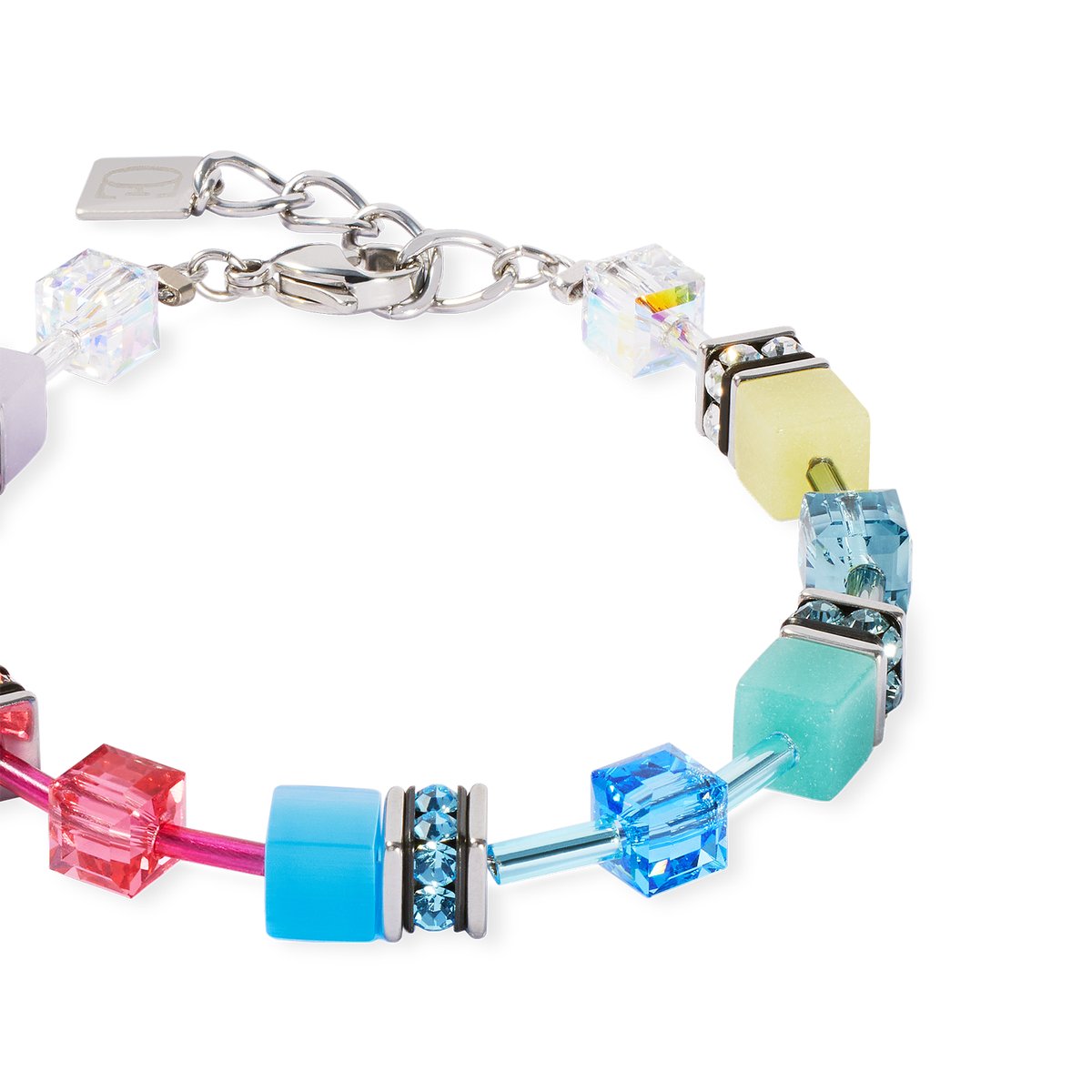 Colours that inspire — the GeoCUBE® Iconic bracelet Magic silver combines shimmering GeoCUBE® elements in multicolour with clear stainless steel in silver. An expressive piece of jewellery for anyone who loves colour and wants to personalise their outfit.