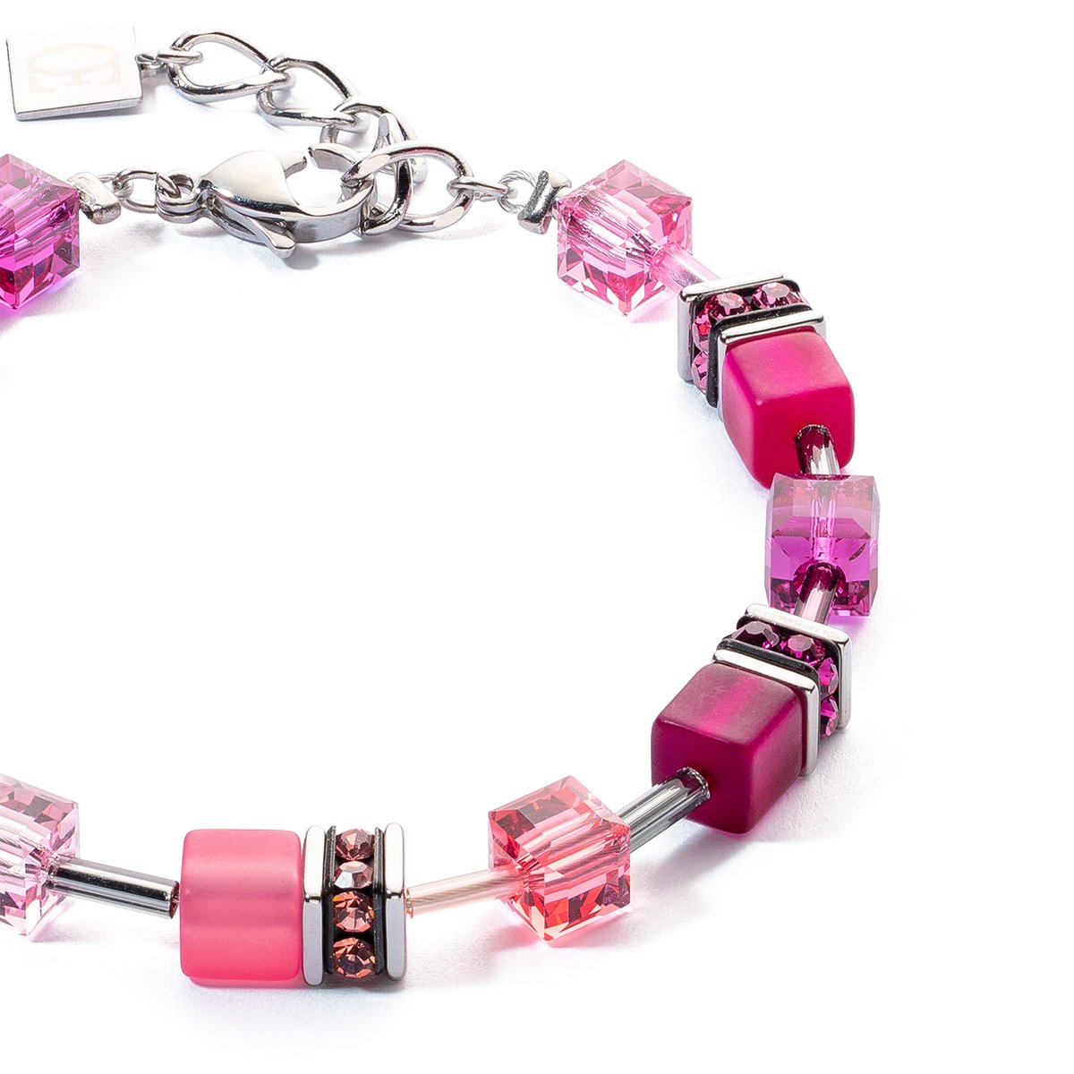 Viva Magenta! We’re paying homage to this year’s fashionable colour with a range whose name says it all. Sophisticated Swarovski® crystals and vibrant GeoCUBES® come together in a distinctive colourway, transforming this bracelet into the season’s must-have accessory. Pure joie de vivre – viva magenta! The stainless steel clasp allows the length to be adjusted by 3 cm.