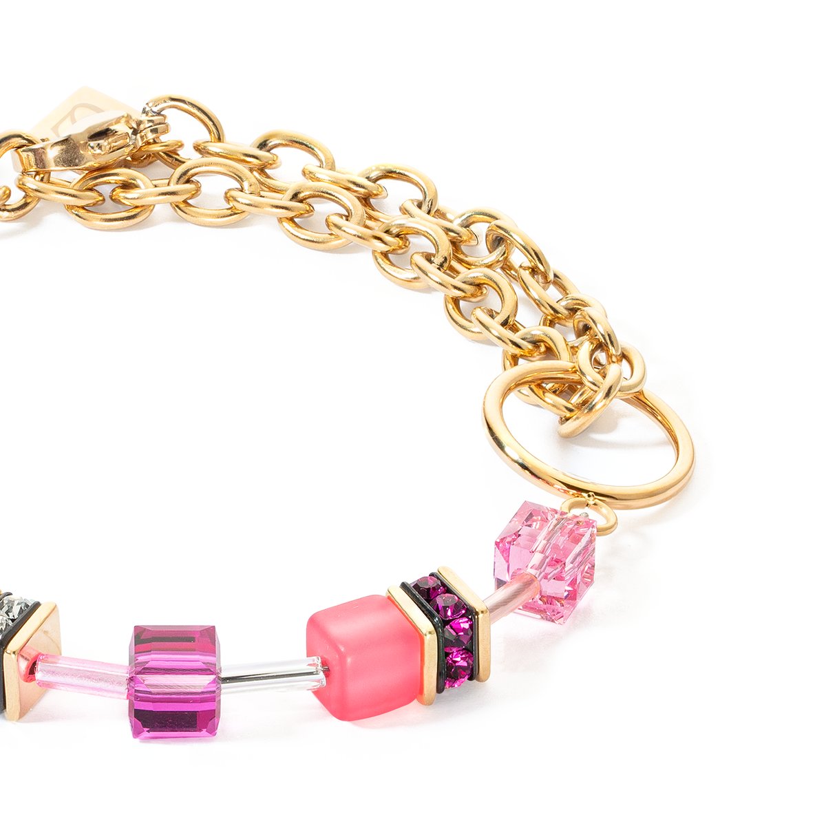 The GEOCUBE® Iconic Chain bracelet in gold and magenta is another take on the Iconic GEOCUBE® design and the perfect addition to the GEOCUBE® Iconic Chain necklace and earrings. It combines the classic GEOCUBE® design with modern stainless steel chain and a striking gold and magenta colourway.