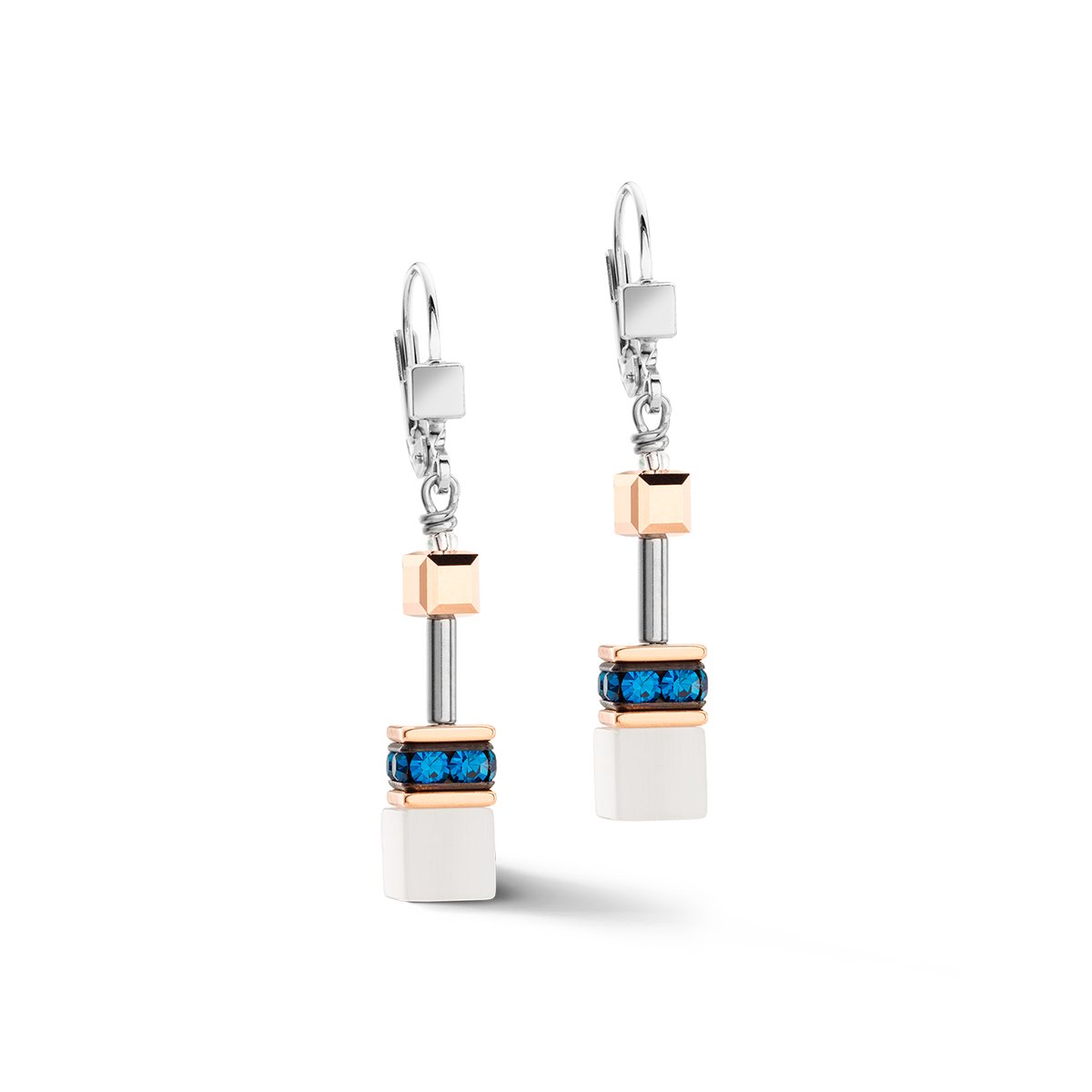 The GEOCUBE® Iconic earrings in Capri blue are suitable for everyday wear or special occasions. They will add a touch of sophistication and individuality to any outfit, day or night.