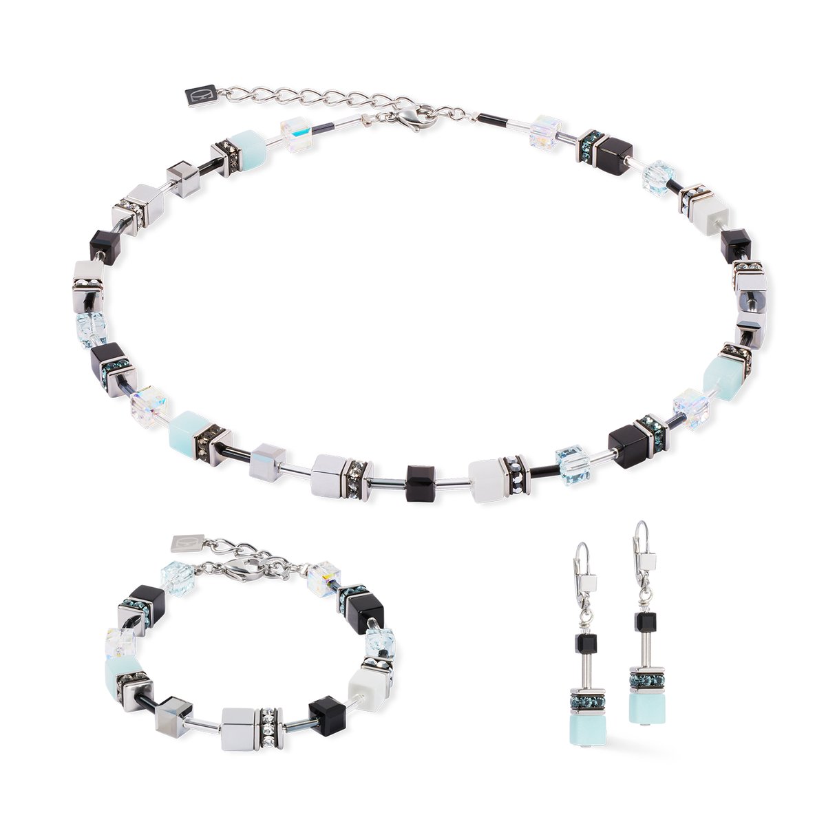 Soft shades of blue with a cool lustre — the GeoCUBE® Iconic earrings Ice Serenity silver radiate a calm, modern elegance with their delicate GeoCUBE® elements. Perfectly complemented by stainless steel in silver, the result is a minimalist yet effective design.