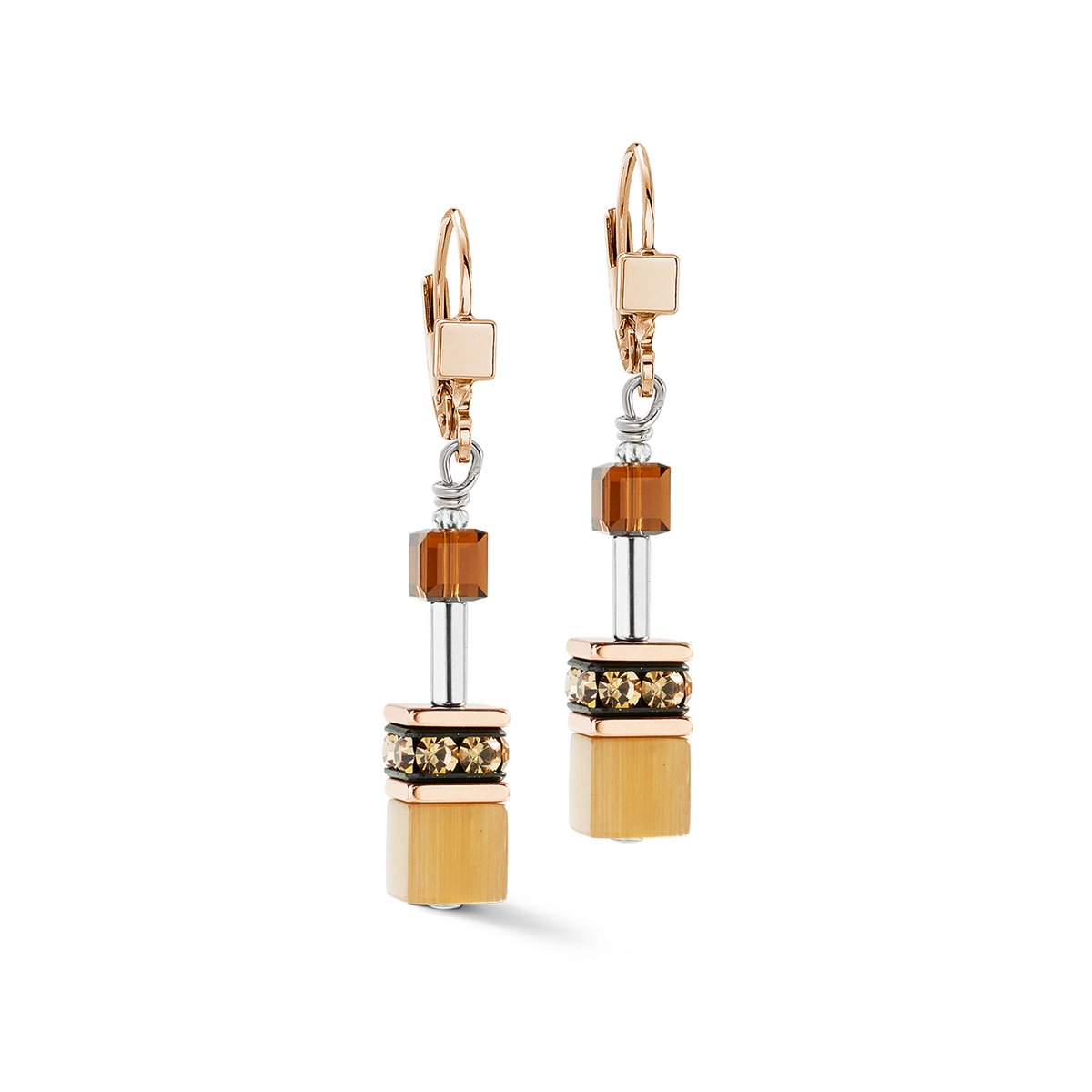 Warm, elegant, modern — the GeoCUBE® Iconic Mocha Mousse earrings bring the trend colour 2025 to life in style. The fine GeoCUBE® elements in soft earthy tones harmonise perfectly with elegant stainless steel in rose gold and create a timeless look with a trendy touch.