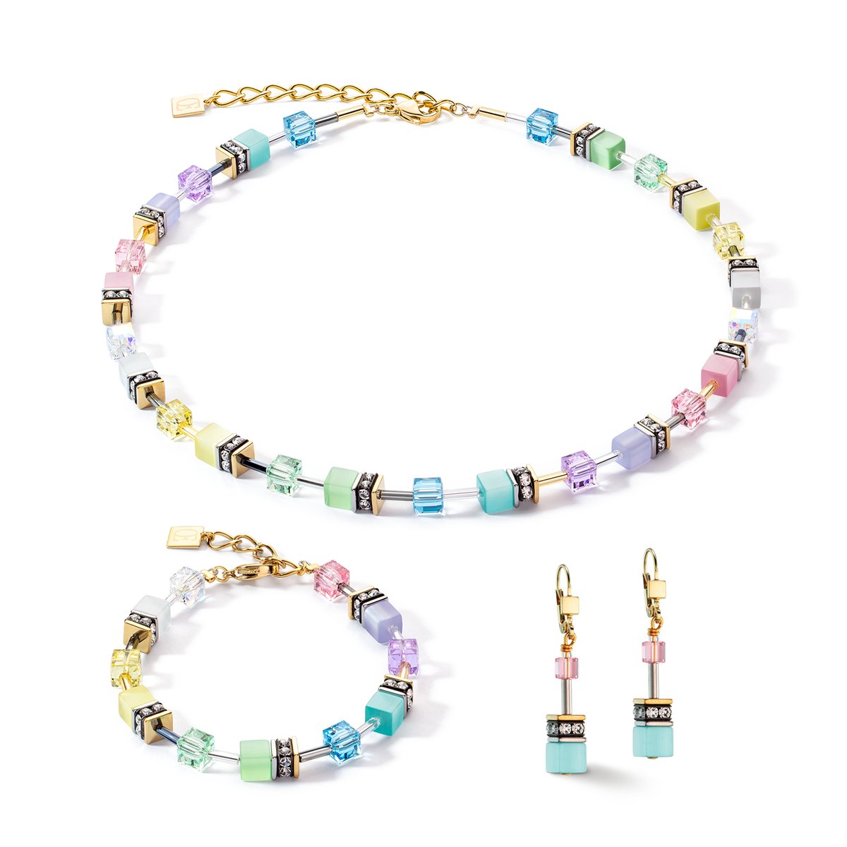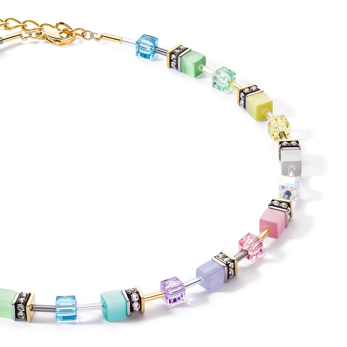 An incredibly light, colourful version of the classic GeoCUBE® design in gold. This timelessly beautiful necklace is made in Germany.
