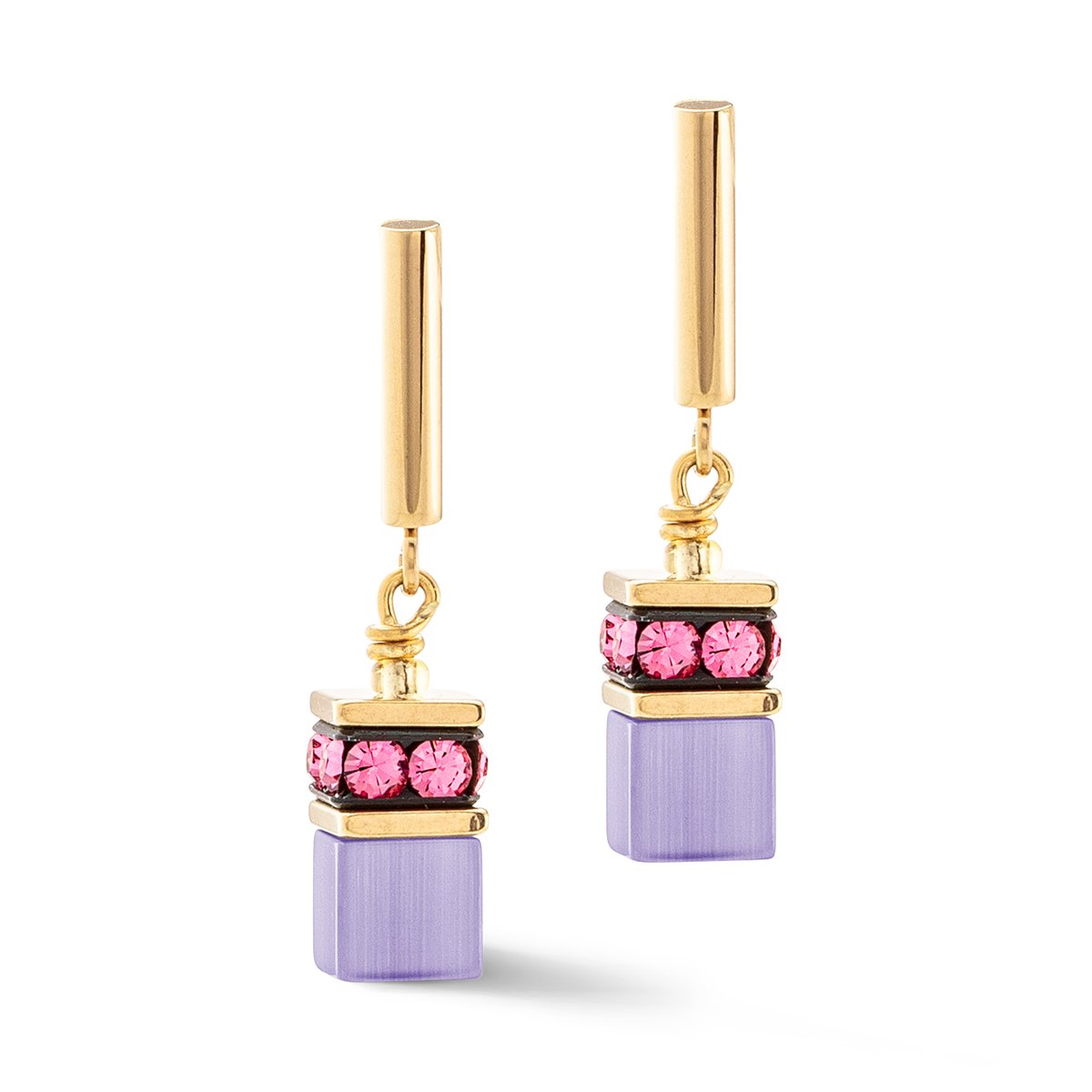 GeoCUBE® Iconic Layer Earrings Gold-Rainbow — Vibrant elegance for every occasion The GeoCUBE® Iconic Layer Earrings in Gold-Rainbow are the perfect complement to our new necklace. These earrings combine the classic GeoCUBE® shape with a fresh colour palette of gold, lilac and sparkling pink crystals. The vibrant colours give the earrings a modern yet elegant look. Ideal for special occasions or to add a touch of colour to your everyday look, the GeoCUBE® Iconic Layer Earrings Gold-Rainbow add stylish accents and bring cheerful elegance to any outfit. Perfect for anyone looking for classic beauty with a vibrant twist.