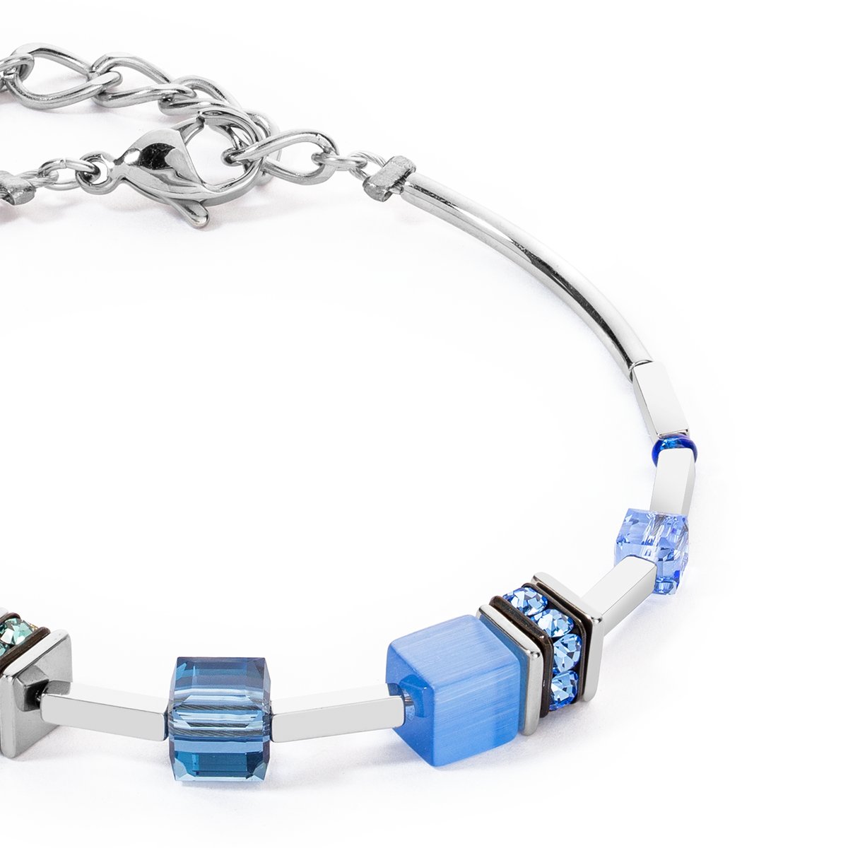 The GeoCUBE® Iconic Lite bracelet in blue-silver is the perfect blend of lightness and elegance with a casual touch. It cleverly embodies the fusion of high-quality materials and timeless design that is typical of COEUR DE LION. At the heart of this bracelet are the iconic GeoCUBES®, available in a wide range of must-have colours.