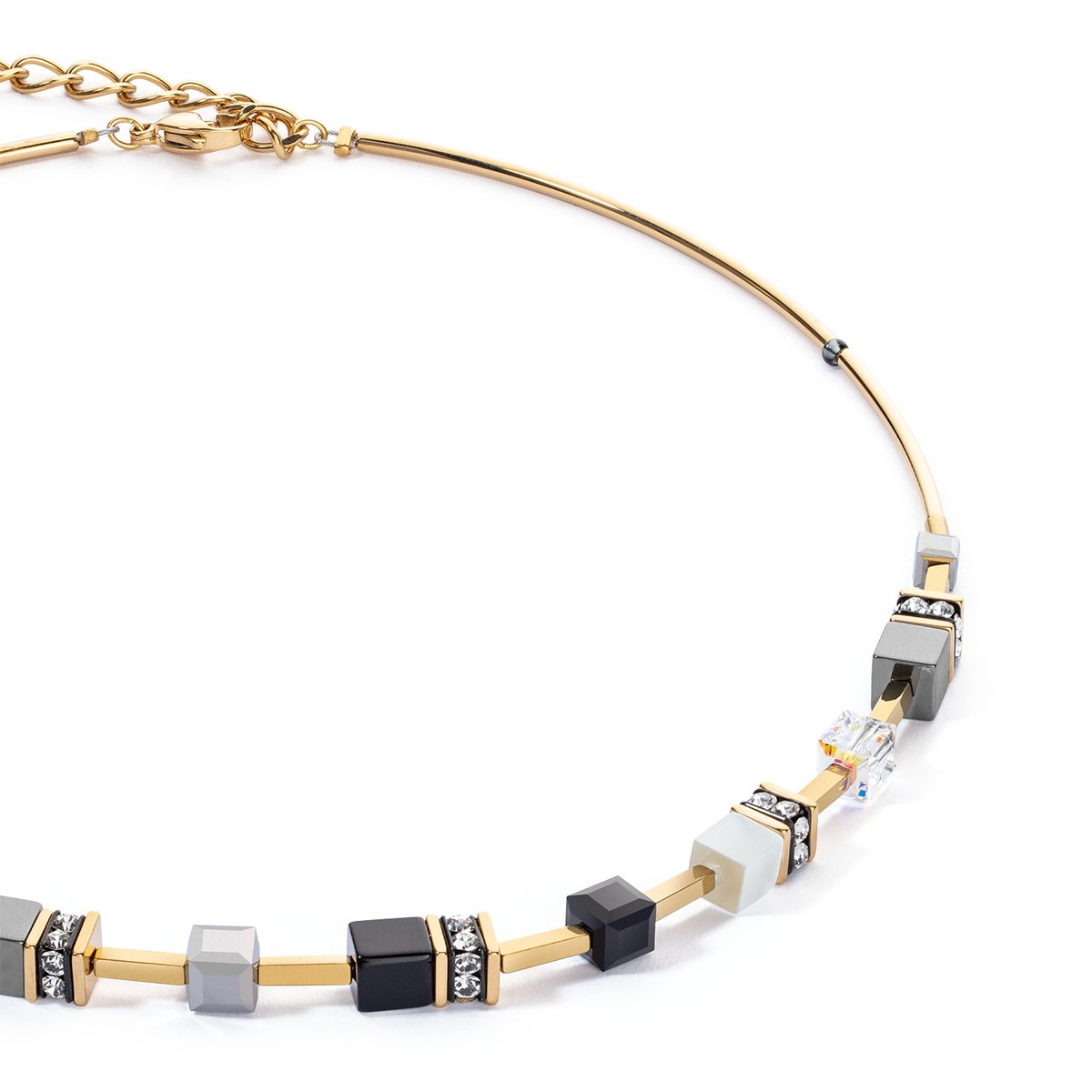 The GeoCUBE® Iconic Lite necklace in black-gold embodies the refined fusion of high-quality materials and a timeless design, characteristic of COEUR DE LION. At its heart are the iconic GeoCUBES®, available in a wide range of must-have colours. This stunning necklace is perfect for any occasion and will add the finishing touch to your look, be it a chic evening dress, a casual everyday outfit or a formal business look. With its versatility and timeless elegance, the GeoCUBE® Iconic Lite necklace is an essential piece of jewellery.