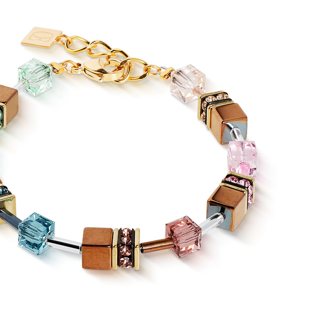 A bracelet as if painted: The Art Nouveau Metallic Edition combines delicate colours in mint, rosé and blue with softly shimmering hematite in a bronze look. The iconic GeoCUBE® design adds structure, while the precious crystals provide luminosity. A stylish companion — solo or in a harmonious set with a necklace and earrings.