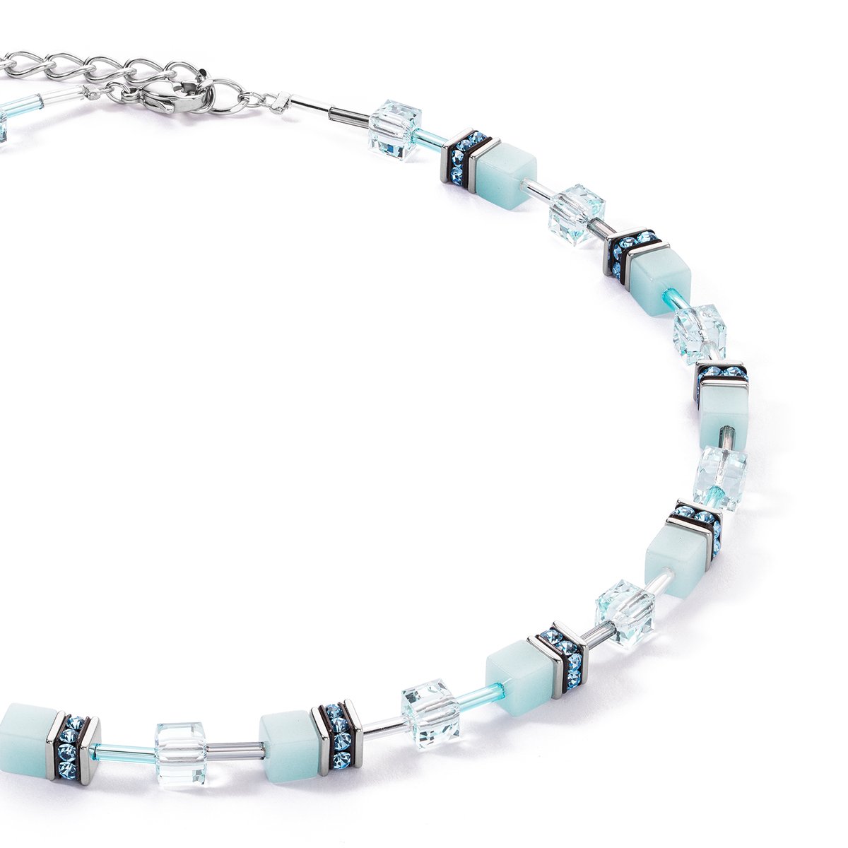GeoCUBE® Iconic Mono Silver Necklace Ice Blue: A touch of winter magic Glide through every season in style with the GeoCUBE® Iconic Mono Silver Necklace in ice blue. This piece of jewellery from our exclusive mono line is clear, fresh and fascinatingly beautiful. The cool, ice blue cubes catch the light and play with the silver accents in a symphony of elegance and freshness. Imagine how the delicate ice blue of this necklace reflects the frosty glow of a winter morning, the calm of a frozen lake, the clarity of a clear sky — all captured in a single, breathtaking design. This necklace is more than just an accessory; it is an expression of style and personality that is almost poetic in its minimalist beauty. Perfect for those who love understated sophistication, the GeoCUBE® Iconic Mono Silver Necklace Ice Blue makes a subtle but unforgettable statement. Whether you wear it in everyday life or for a special occasion, this piece of jewellery will always enchant you with its cool elegance and timeless beauty.