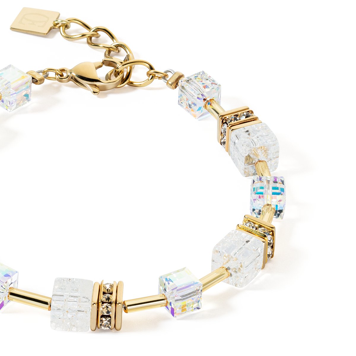 The GEOCUBE® Iconic Nature bracelet is a handcrafted piece of jewellery with cracked rock crystal and sparkling Swarovski® crystals. This masterly piece of jewellery combines the calming effect of rock crystal with gold and crystal shades to create an elegant accessory that celebrates the beauty of nature.