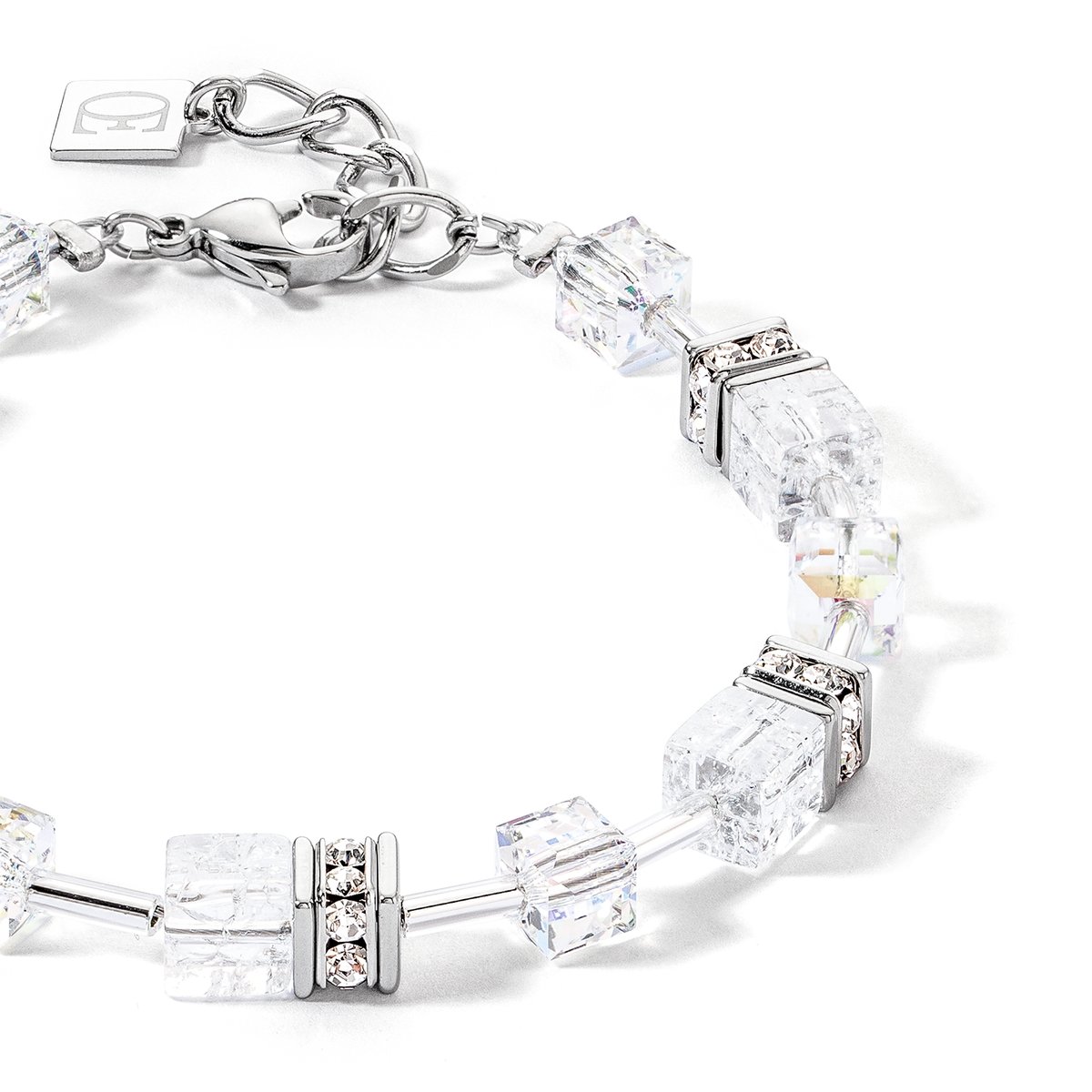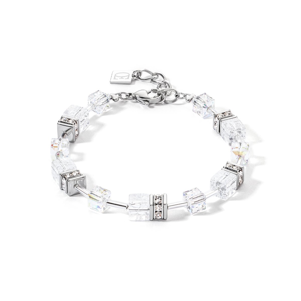 GeoCUBE® Iconic Nature bracelet silver-white: classic beauty The GeoCUBE® Iconic Nature bracelet in silver-white brings classic elegance to your wrist. With its combination of silver-coloured stainless steel, clear crystals and cracked rock crystal cubes, this bracelet is a timeless accessory that goes with any outfit. Whether for everyday wear or special occasions, this bracelet will add a subtle yet striking touch of sophistication to your style while staying on trend.