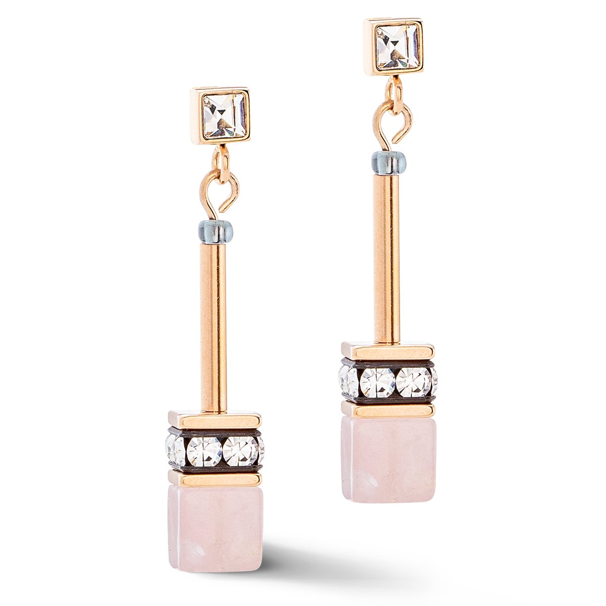 GeoCUBE® Iconic Nature earrings rose: Delicate accents in rose gold With the GeoCUBE® Iconic Nature earrings rose, you can set elegant accents. The combination of rose quartz and crystals, set in rose gold, creates a subtle yet sophisticated look. These earrings are the perfect addition to any occasion, whether for everyday wear or special occasions.