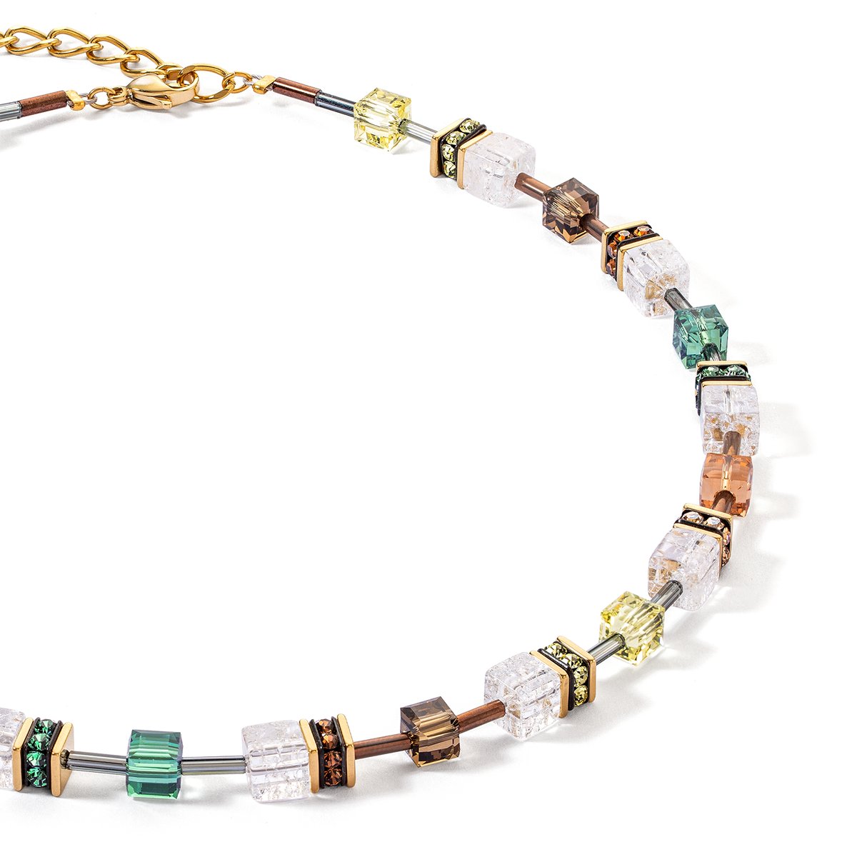 GeoCUBE® Iconic Nature necklace brown and white in gold: naturalness meets glamour Discover the perfect balance between nature and elegance with the GeoCUBE® Iconic Nature necklace in brown and white and gold. This extraordinary necklace combines the soft, earthy tones of crystals with the fascinating, cracked rock crystal cubes that give the piece of jewellery a unique, natural texture. Inspired by the current colour trend of grounded glamour, this necklace combines warm earthy tones with the luxurious shine of gold. It is not just a piece of jewellery, but an expression of style awareness and a connection with nature. Whether for everyday wear or special occasions, this necklace adds a subtle yet impressive touch to any outfit. Experience the magic of nature combined with glamorous design — with the GeoCUBE® Iconic Nature necklace brown and white in gold. A must-have for anyone who wants to combine elegance and earthiness in a stylish way.